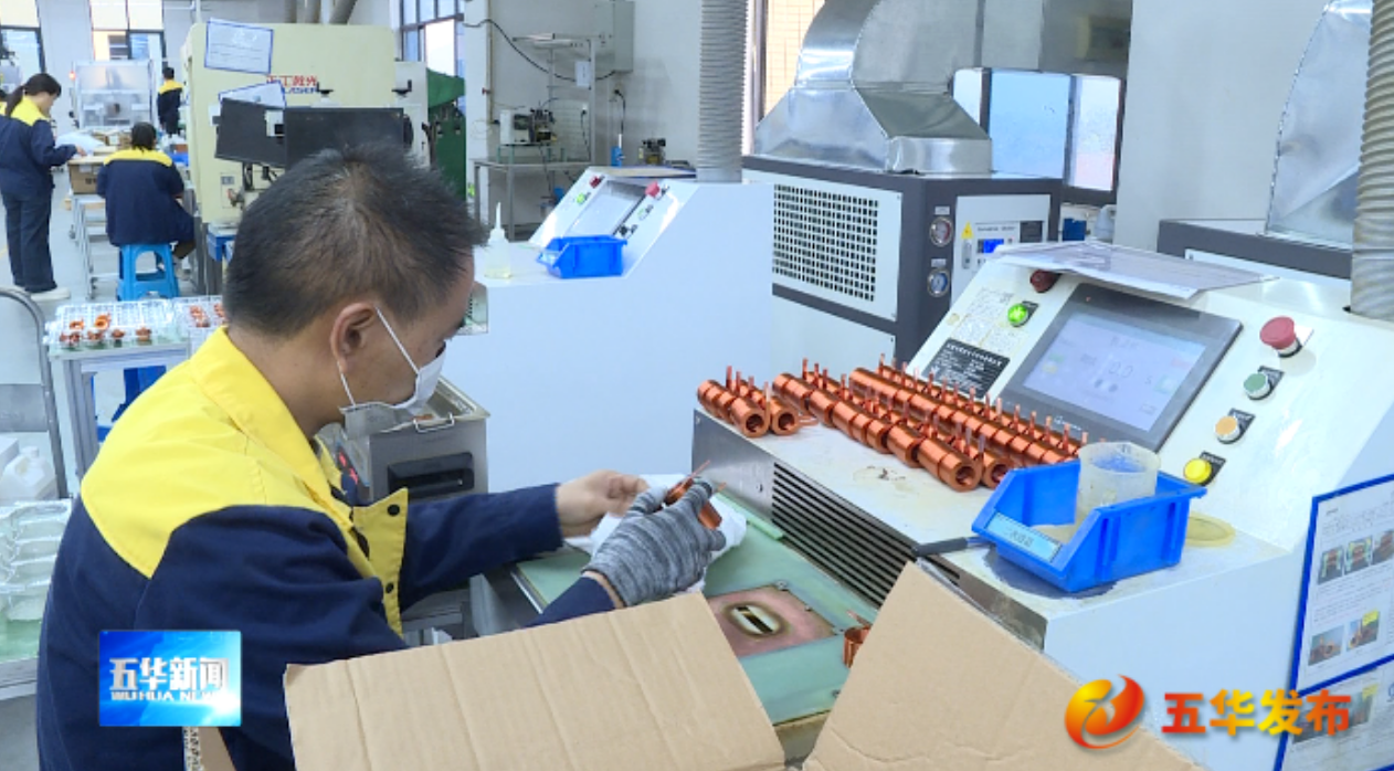 在五华雅玛西电子科技有限公司,节后首个工作日,该企业就已全面进入工作状态。走进企业生产车间,只见一条条生产线高速运转,工人们熟练地操作着设备,有序生产着电子变压器及电感元器件等各类产品。