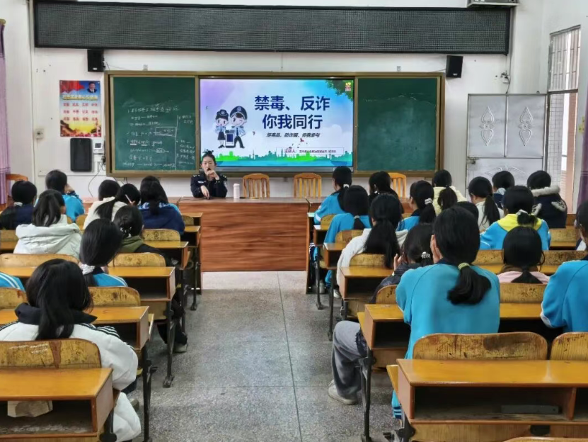 在中学课堂,法治教育的重点则更加注重预防犯罪和行为规范。岐岭、河东派出所的民警结合新修订的《治安管理处罚法》,用发生在身边的聚众斗殴、寻衅滋事、无证驾驶等真实案例“以案说法”,深刻剖析了违法犯罪的严重后果。同时,针对当前高发的电信网络诈骗和“两卡”犯罪,民警详细讲解了帮信罪的危害,警醒同学们守护好自己的银行卡和手机卡,切勿因一时贪念沦为电诈“工具人”。