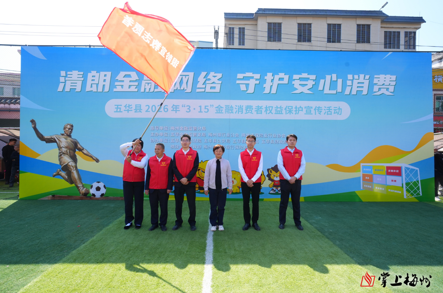 掌上梅州讯 3月12日上午,五华县2026年“3·15”金融消费者权益保护教育宣传活动在横陂镇球王公园举行。活动以“清朗金融网络 守护安心消费”为主题,通过授旗仪式、特色市集、互动体验等多元形式,切实提升全民金融素养,筑牢金融安全防线。