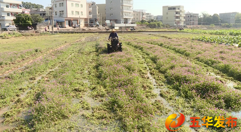初春农事忙,沃野备耕酣。在五华县安流镇五联村的高标准农田里,去年冬季无人机飞播的200亩紫云英长势喜人、绿意盎然,眼下正值翻压还田关键期,旋耕机来回穿梭,将茂盛的紫云英均匀翻耕入土,化作滋养耕地的天然绿肥,为早稻春耕整地、育秧、备播筑牢地力基础。