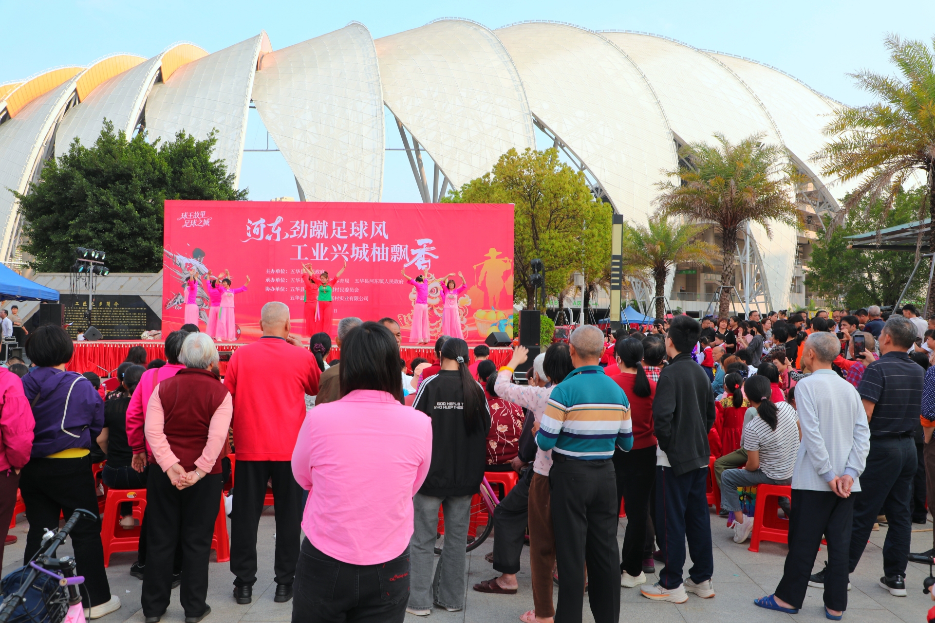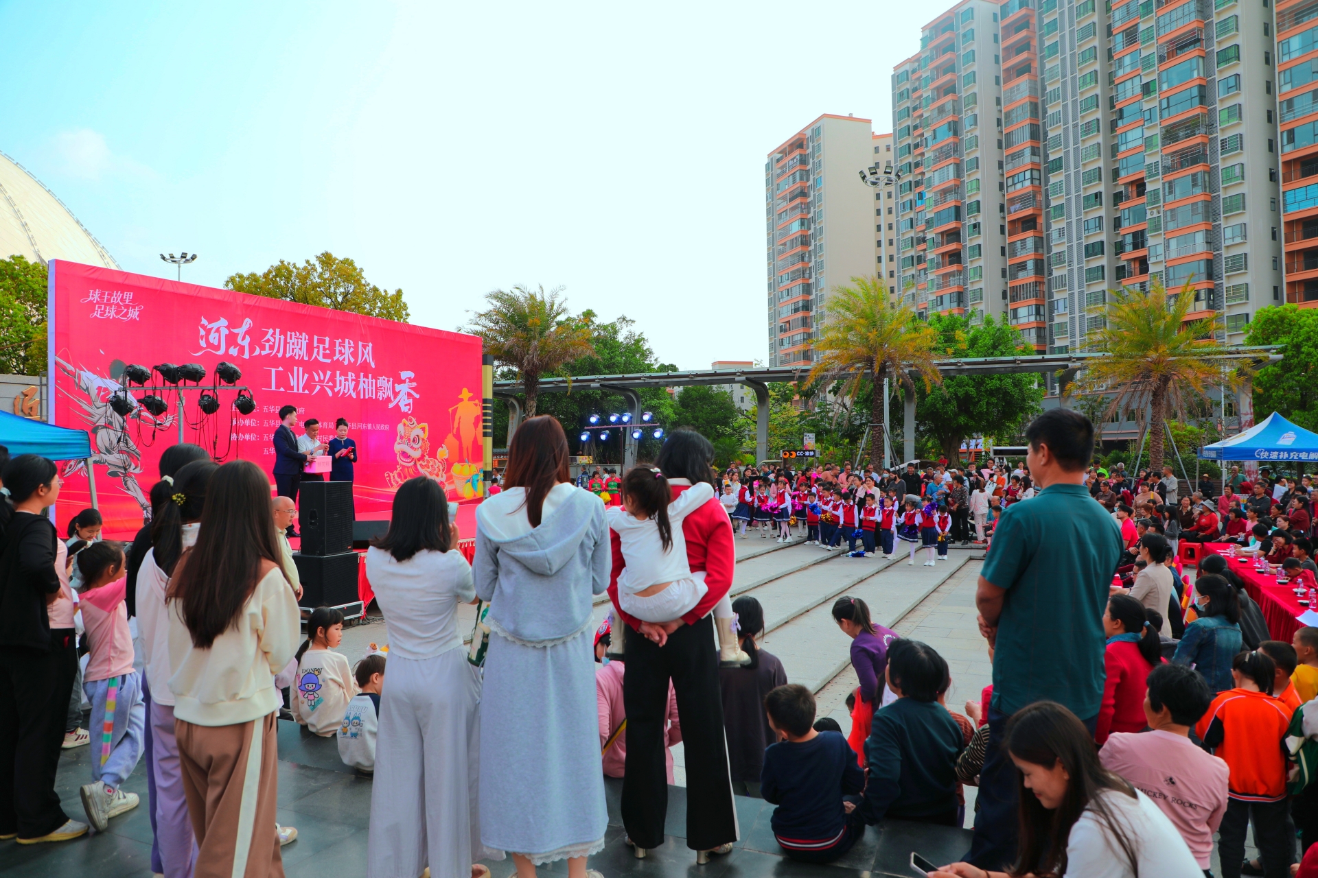 本场比赛恰逢河东镇传统圩日与中甲赛事联动的重要节点。当天下午4时,河东镇以“河东劲蹴足球风 工业兴城柚飘香”为主题,在奥体中心广场启动圩日活动,将客家特色文化、本土优势产业与足球赛事氛围有机结合,让前来观赛的群众提前感受浓郁的客家风情和节日喜悦。
