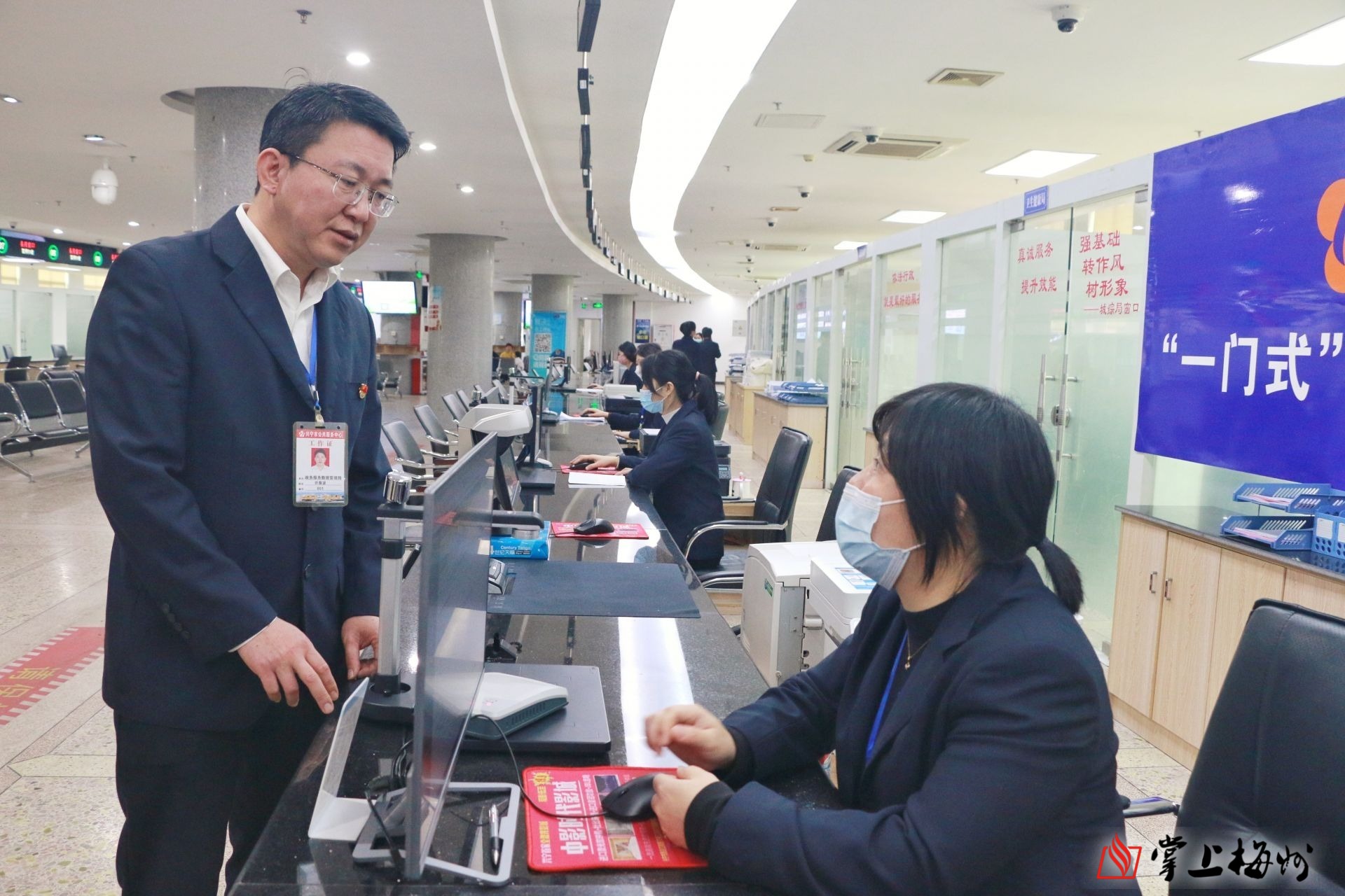 许振波(左)检查各窗口工作情况。(梁蕊 摄)