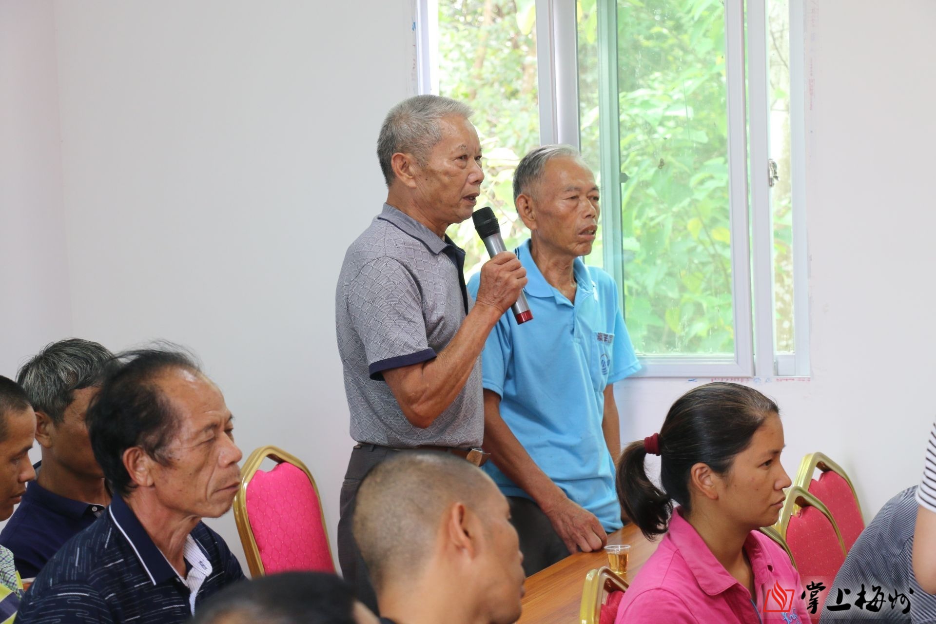 在龙田镇羊岭高陂选区代表述职评议会上,选民向人大代表反映问题、提出意见建议。