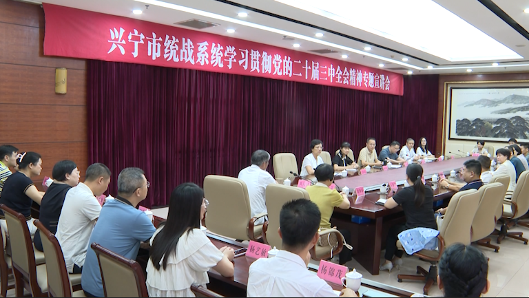 会议要求,要精准贯彻党的二十届三中全会精神,进一步发挥统战优势、完善大统战格局。全市统战系统各单位、各部门要坚持以党的二十届三中全会精神为统领,主动对标精神要求,紧密结合工作实际,切实把党的二十届三中全会精神转化为具体思路和措施,充分发挥统一战线凝聚人心、汇聚力量的强大法宝作用,立足不同领域统一战线成员的特点,围绕高质量发展这个首要任务,用好改革开放关键一招,筑牢思想同心根基,打通建言献策渠道,聚力赋能兴宁发展,在进一步全面深化改革、推进中国式现代化中展现新担当新作为。