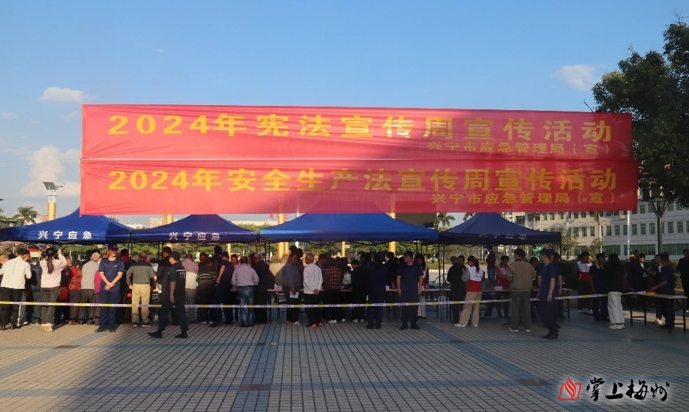 掌上梅州讯 为大力弘扬宪法精神,推动普及安全生产相关法律法规,在第十一个国家宪法日来临之际,12月4日,兴宁市安委办组织该市应急管理局、自然资源局、林业局、城综局、卫生健康局、气象局、消防救援大队、交警大队、融媒体中心、科学技术协会、供电局、红十字会、宁新街道办、兴田街道办、福兴街道办、中国人民财产保险股份有限公司兴宁支公司、中国移动兴宁分公司等有关单位,在兴宁市明珠文化广场组织开展《中华人民共和国宪法》《中华人民共和国安全生产法》主题宣传咨询活动。