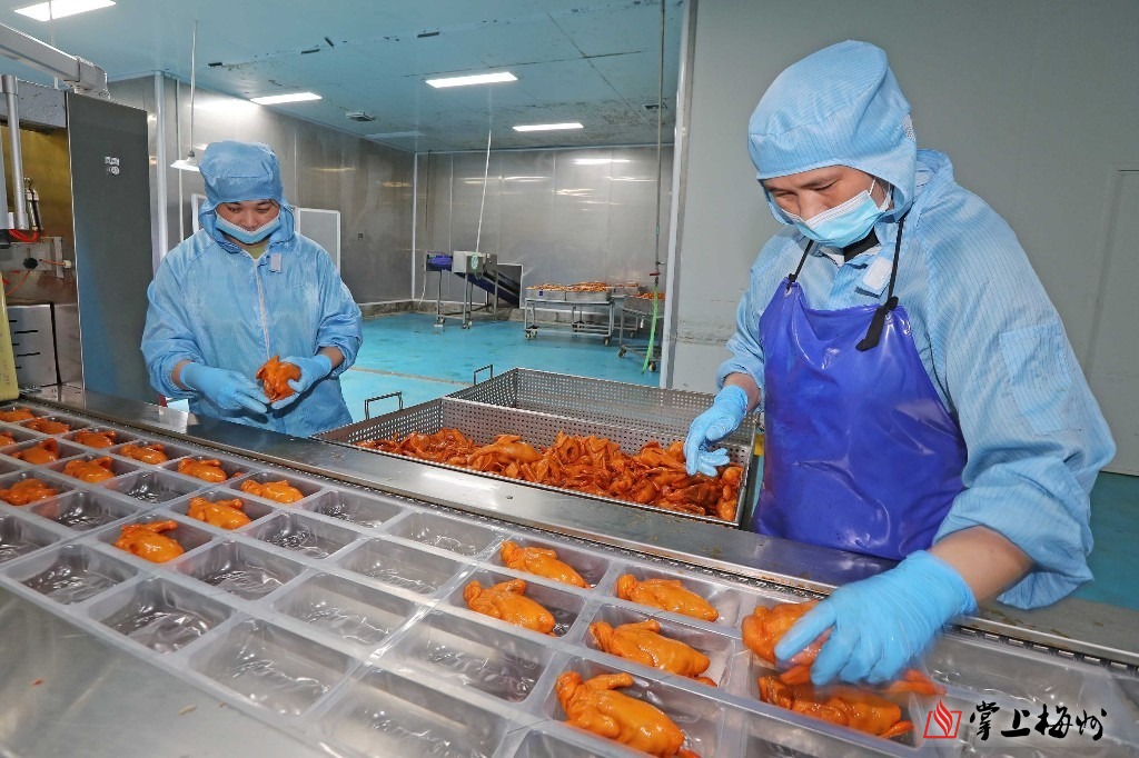 风味乳鸽、自热鸽汤、鸽肉粽、鸽蛋……小小的鸽子,在梅州市金绿现代农业发展有限公司的食品深加工车间里,演变出各式各样的美味,送上了人们的餐桌。随着近年预制菜行业的兴起,为了提高联农带农的效益,提升产品的价值,金绿公司正大力发展肉鸽食品深加工产业。这个全省最大的肉鸽预制菜加工基地,如今可实现年加工肉鸽1500万只。