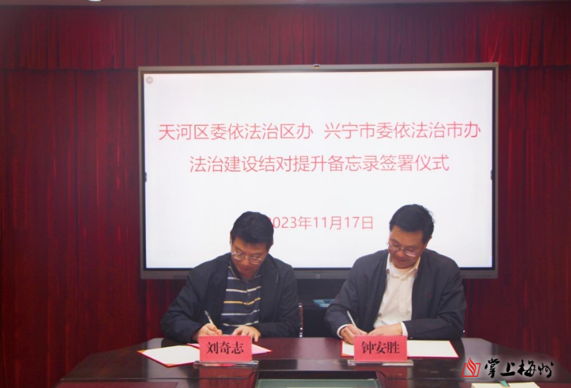 两地召开的座谈会中,聚焦依法治市工作和行政执法、律师管理、行政复议与行政应诉等司法行政工作进行深入交流。同时,双方就进一步推进结对提升交流工作,在建立结对提升工作机制、学习交流、专题研讨等六个方面达成了一致意见。会议上签署了《天河区委依法治区办 兴宁市委依法治市办法治建设结对提升备忘录》,共同推动两地法治建设工作取得新进步。
