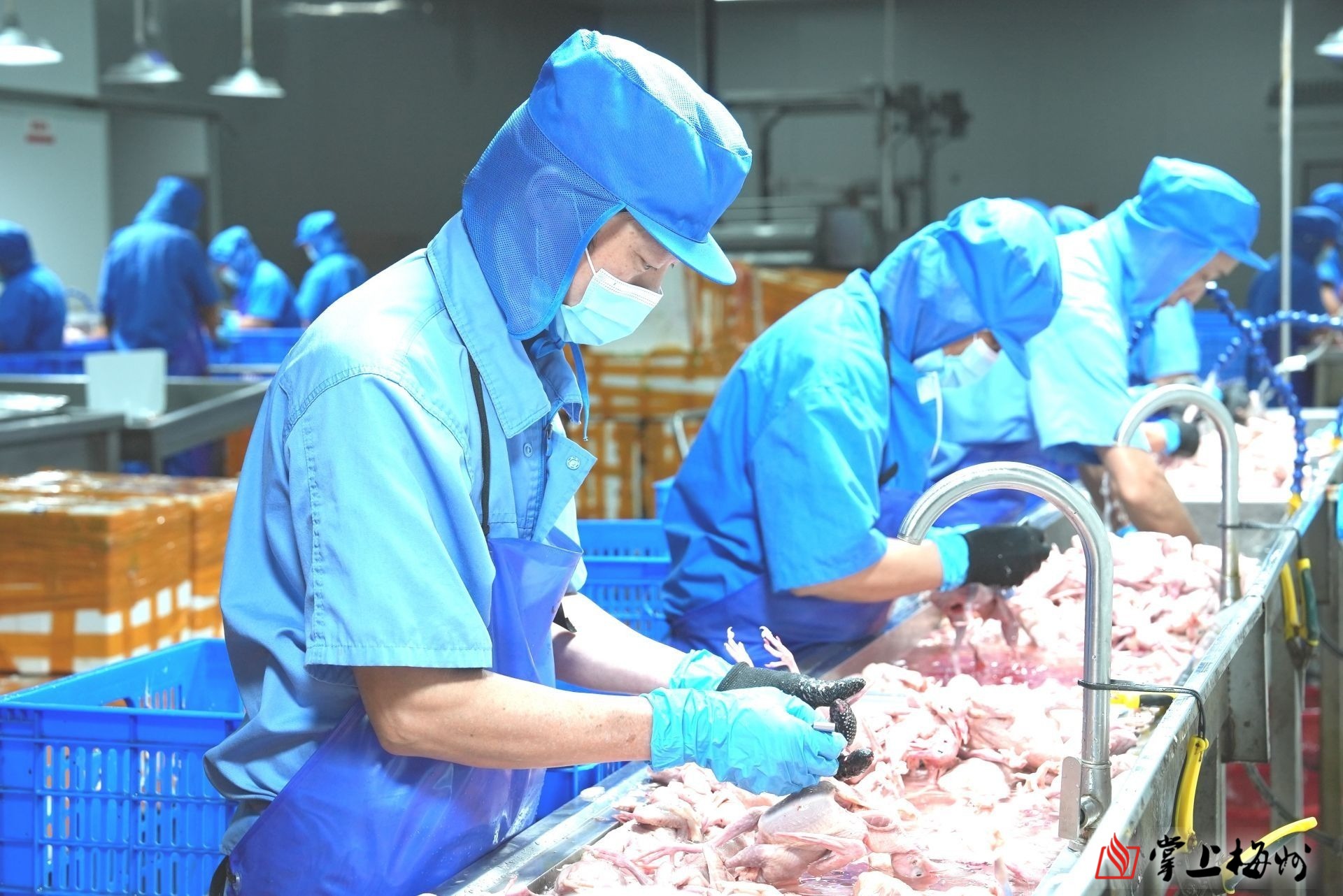 工作人员正在仔细清洗肉鸽。(陈思杰 摄)