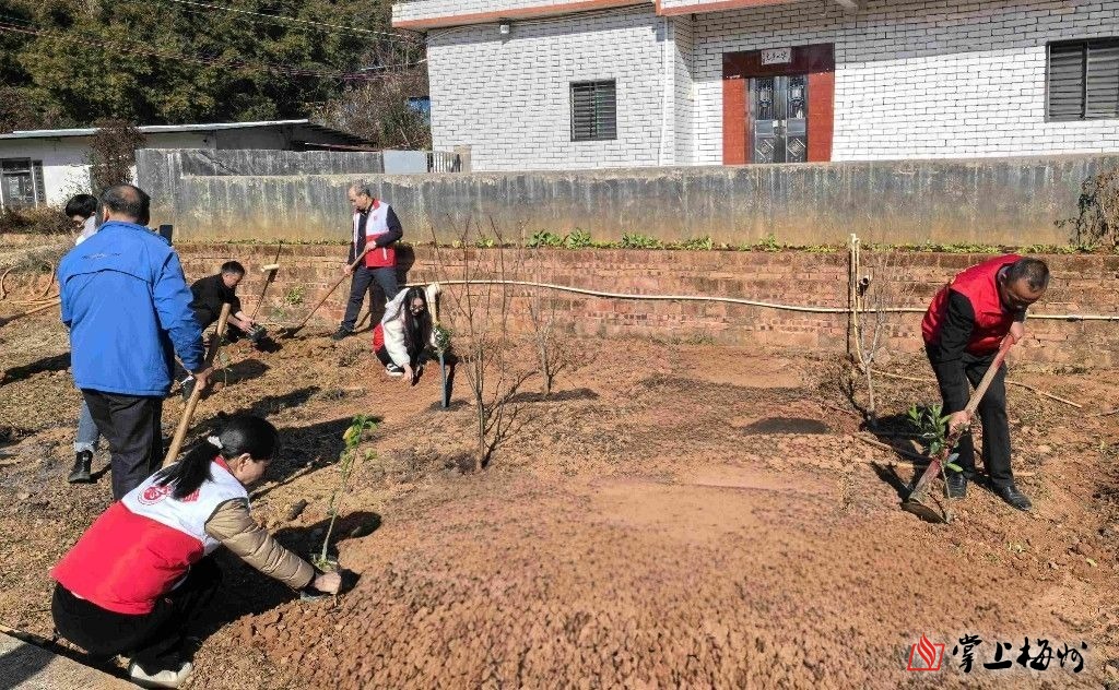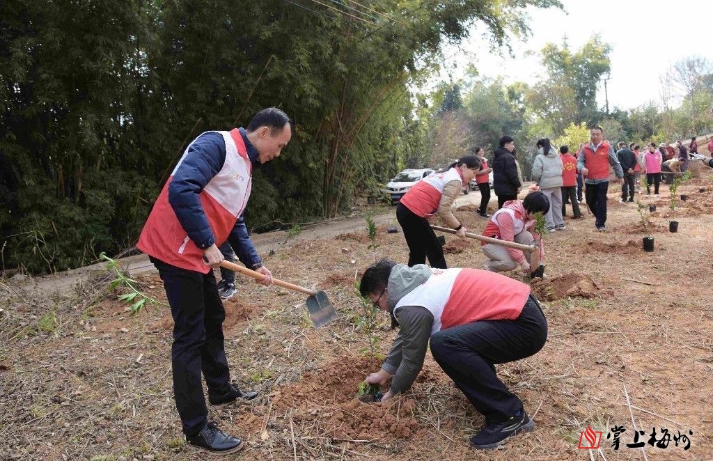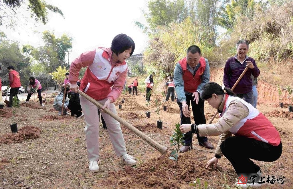 掌上梅州讯 1月14日,兴宁市永和镇抓住持续晴好的适宜天气,结合“新增绿化一张图”工作,在蓝排村组织开展“千村增绿”植树绿化活动。田野间、道路旁、农房边,村民、镇村干部、驻镇帮镇扶村工作队等一起挥舞锄头,挖坑、种树、浇水,冬日暖阳下绿美广东的实践正在兴宁市永和镇火热进行着。