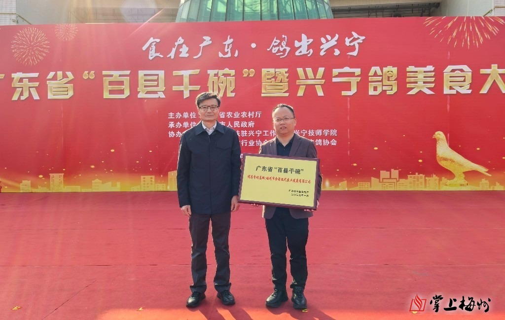 活动中,省农业农村厅在活动中授予梅州市金绿现代农业发展有限公司“广东省‘百县千碗’优质食材基地”。据了解,兴宁市近年来着力擦亮“兴宁鸽”特色产业品牌,大力推动兴宁鸽高质量发展,努力构建形成“优质种鸽繁育、肉鸽规模养殖、产品生产加工、品牌销售”于一体的全产业链发展模式,让“兴宁鸽”区域公用品牌产品走进湾区、走向全国,助力“百千万工程”加力提速,走出一条富民兴村、联农带农的“好路子”。梅州市金绿现代农业发展有限公司专注产业,充分讲好“鸽出兴宁”的品牌故事,有力展现了广东“百县千碗”食材、菜品的好品质。