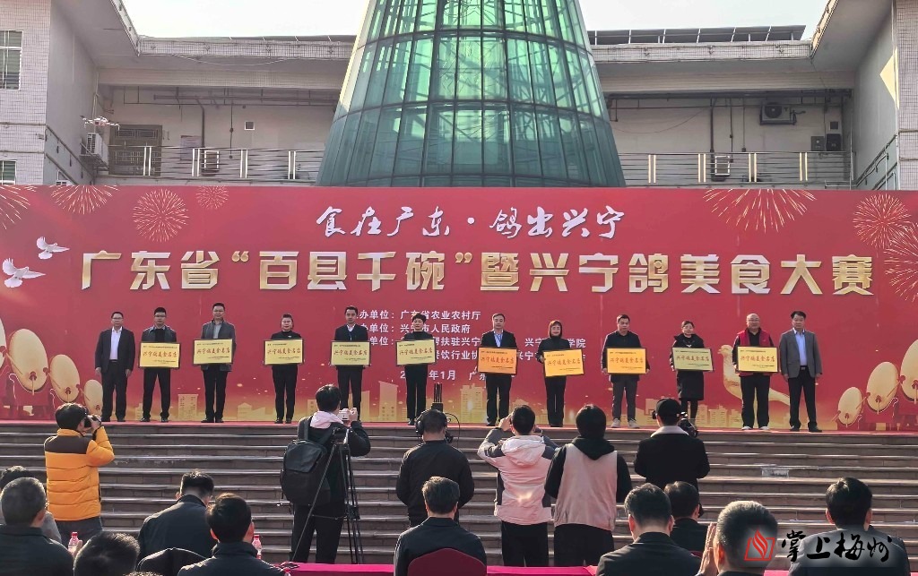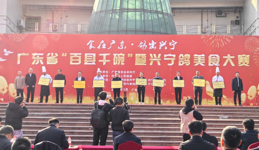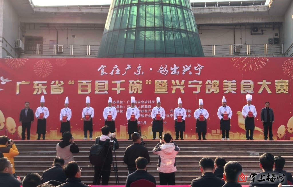 掌上梅州讯 1月19日上午,广东省“百县千碗”暨兴宁鸽美食大赛举行颁奖仪式。省农业农村厅二级巡视员罗一心、乡村产业发展处处长胡学冬、乡村产业发展处副处长练建军,梅州市政府副秘书长徐振东、市商务局二级调研员叶洪清、市农业农村局副局长刘治中、市人力资源和社会保障局副局长廖先鉴、市文化广电旅游局四级调研员朱永东,兴宁市领导赵超文、邓强、陈日新、朱志勇、麦东阳、黄志勇等参加。
