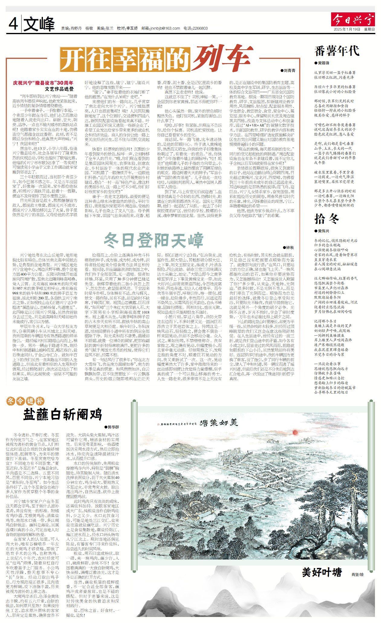一手牵着妻子,一手推着行李箱,一个青涩少年跟在身后,他们忐忑而激动地随着人流走向出口。崭新、宏大、明亮、洁净,一点也不输大城市的高铁站点呢!他踏着家乡实实在在的土地,仿佛连空气都蕴含丝丝香甜。此刻,若不是顾忌身份和场合,他真想大声呐喊:“兴宁!我回来啦!”