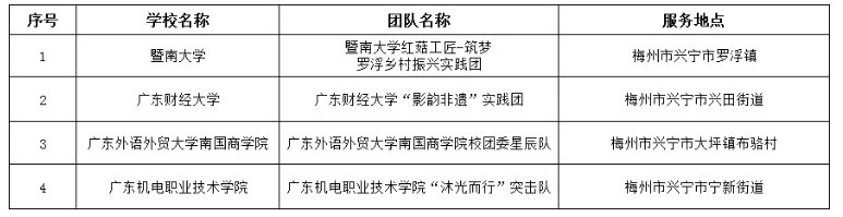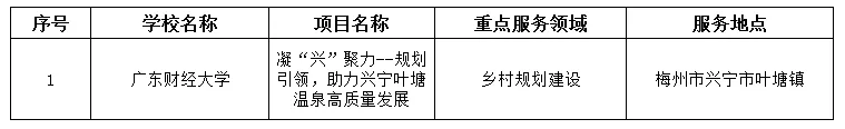 此次表彰中,《凝“兴”聚力﹣﹣规划引领,助力兴宁叶塘温泉高质量发展》获 “百千万工程”突击队品牌项目。暨南大学红菇工匠﹣筑梦罗浮乡村振兴实践团、广东财经大学“影韵非遗”实践团、广东外语外贸大学南国商学院校团委星辰队、广东机电职业技术学院“沐光而行”突击队获得 “百千万工程”突击队典型案例。