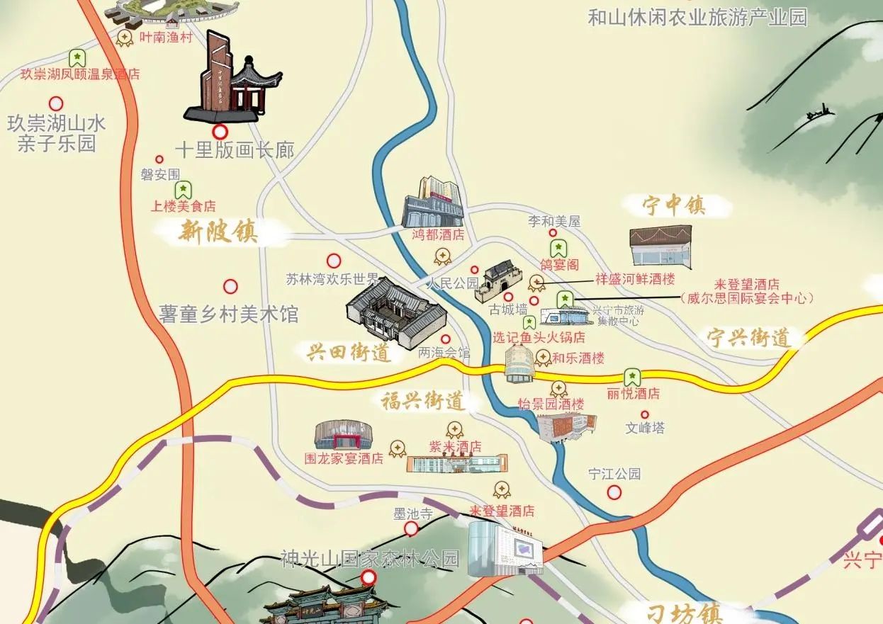 近日,兴宁市发布“兴宁鸽”美食手绘地图,其设计采用大量版画元素,使用怀旧的配色方案,在涵盖美食名店、游玩路线等丰富内容的同时,彰显“中国南方版画之乡”的独特魅力。