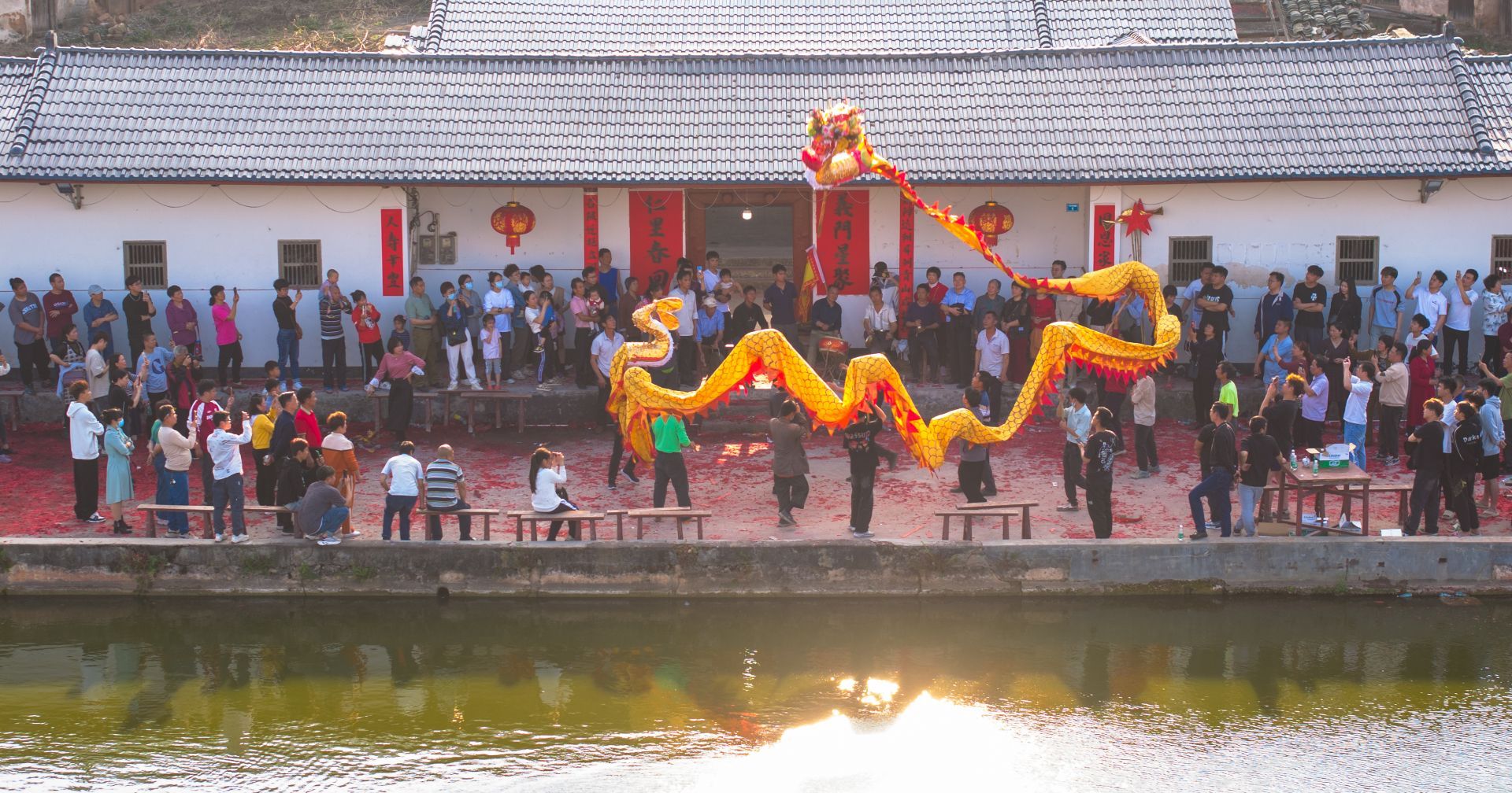 “回娘家的妹子们给大家派利是啦!”人群中有人喊。跳舞的女子们都从篮子里拿出红包,撒向人群,欢呼声响起,一阵哄抢,场面愈加热闹。