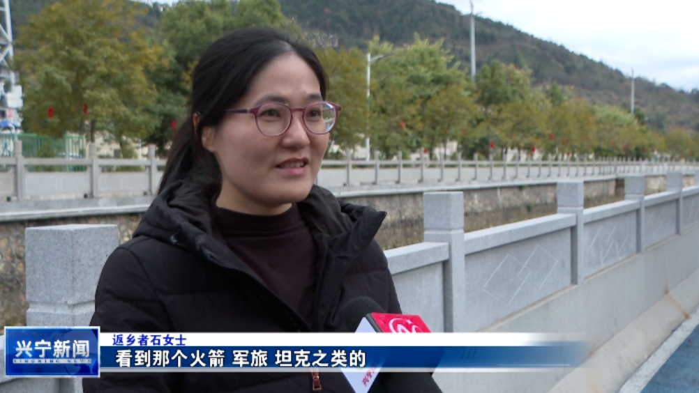 【返乡者石女士: 开心、幸福,焕然一新的感觉。我一年没有回来了,感觉一下高速(看到)道路都是沥青路,铺得很好,而且整个街道也变得很干净。看到那个火箭、军旅之类的,小朋友特别开心。真的不一样,变化很大,停车位那些也更规范了,然后街道也没那么拥挤了。】