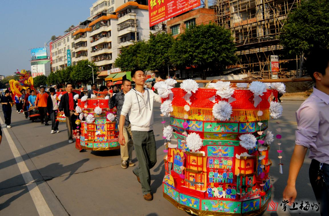 “客家话中,‘灯’与‘丁’同音,‘赏’与‘上’同音,所以兴宁上灯又被称为‘赏灯’,其不仅有观赏灯色的意思,还能表示庆祝添丁。”广东省非遗项目“兴宁上灯习俗”(赏灯)项目代表性传承人罗志平介绍说,兴宁上(赏)灯民俗历史悠久,源于东汉,起于北宋,盛于明清,有文字记载的历史就有500多年。