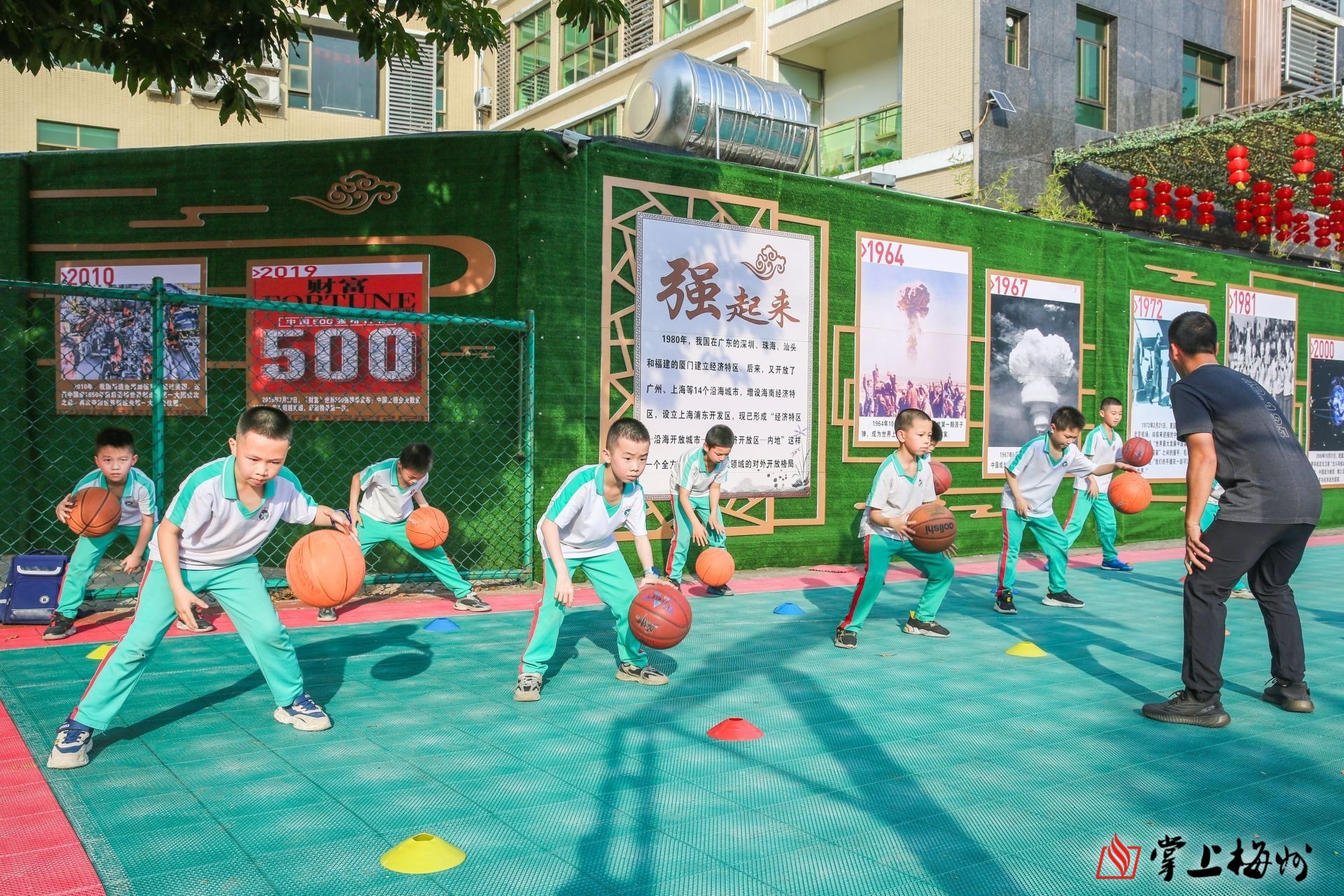 下午放学时间,在兴宁市第一小学的篮球场上,课后篮球特色课便如火如荼开展。运球训练中,学生们专注地控制着篮球的节奏,一遍又一遍地重复着动作,力求达到熟练与精准。