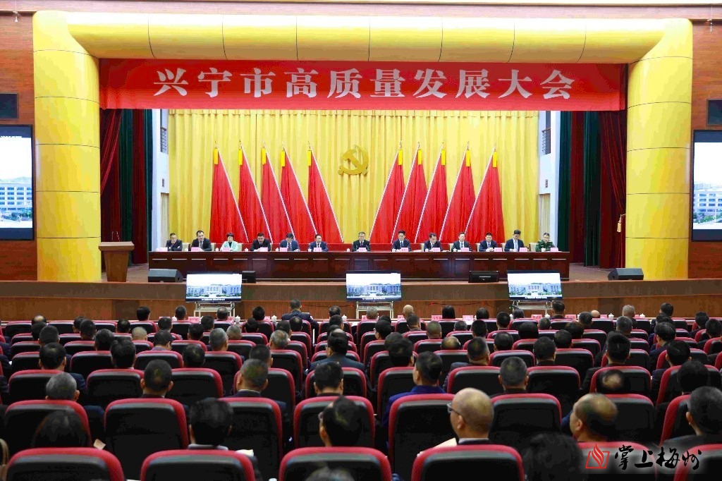 奋楫逐春潮,实干开新局。2月21日,兴宁市高质量发展大会在兴城召开。会议深入贯彻落实中央经济工作会议、省委十三届六次全会暨省委经济工作会议、全省高质量发展大会精神,以及梅州市委八届十次全会暨市委经济工作会议、梅州高质量发展大会精神,围绕加快现代化产业体系建设,动员全市上下齐努力,奋力再造一个新兴宁,推动中国式现代化兴宁实践取得更大突破。兴宁市委书记罗达祥出席会议并讲话,兴宁市委副书记、市长赵超文主持会议。兴宁市人大常委会主任邓强、兴宁市政协主席陈日新出席会议。
