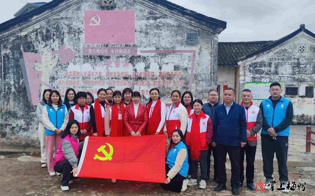 会后,参会人员统一前往参观学习梅州市文物保护单位"黄粤兴″,开展红色教育活动。大家跟随五里村党委书记黄辉雄的脚步,通过珍贵的历史图片、文物史料,深入了解黄粤兴的红色革命史:1925年3月(民国十四年),广东革命政府为了肃清陈炯明军阀势力林虎部队,由当时黄埔军校的校长蒋介石及政治部主任周恩来率领的东征右路联军向兴宁进军。他们胸章上写着“不怕死,不拉伕,不筹饷,不住民房”的口号,指挥所设在五里村黄粤兴的新民学校,进行部署和谋划作战方案,攻打兴宁城取得胜利。大家深刻感受到革命先辈们不畏艰险、艰苦奋斗的革命精神和爱国情怀。活动中进行了重温入党誓词,进一步牢记初心使命,为共产主义奋斗终身。