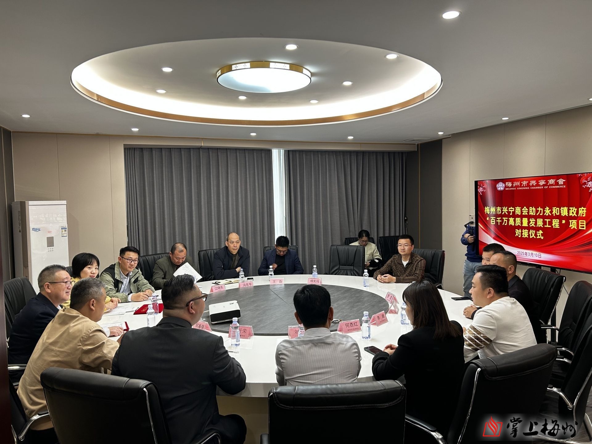 会上,永和镇首先向商会播放了镇招商宣传视频短片,充分展示了永和镇在交通区位、生态资源和产业基础等方面的独特优势,并与梅州兴宁商会正式签订了梅州兴宁商会助力永和镇“百县千镇万村高质量发展”项目对接协议。该协议的签订,标志着永和镇与梅州兴宁商会的合作迈入了新阶段,双方将以“资源共享、优势互补、合作共赢”为目标,搭建长效合作平台,为永和镇镇域经济高质量发展注入新动能。席间,双方就共同推进“百千万工程”、促进永和镇经济发展等议题展开了深入讨论和交流。