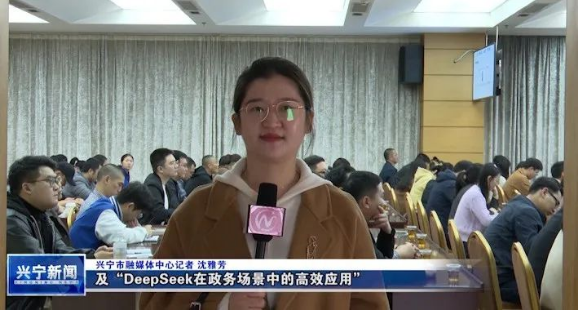 兴宁市融媒体中心记者 沈雅芳:“观众朋友,我现在所在的位置是兴宁市会展中心,这里正在举行一场别开生面的AI技术专题培训会,它将聚焦‘智能政务助手DeepSeek’及‘DeepSeek在政务场景中的高效应用’,进一步提升兴宁市党委机构部门干部队伍的AI认知能力和DeepSeek应用技巧,助推政务工作高质量发展。”