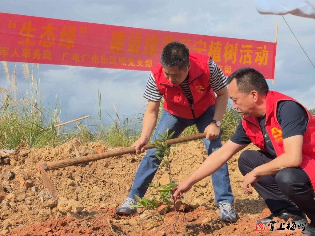 活动中,天河区退役军人事务局联合党支部共建单位——广东有线广播电视网络有限公司东部区域中心,通过捐赠1000棵树苗、组织集体植树等形式,为罗岗镇红旗村打造生态屏障,助力当地林业经济与生态旅游融合发展。