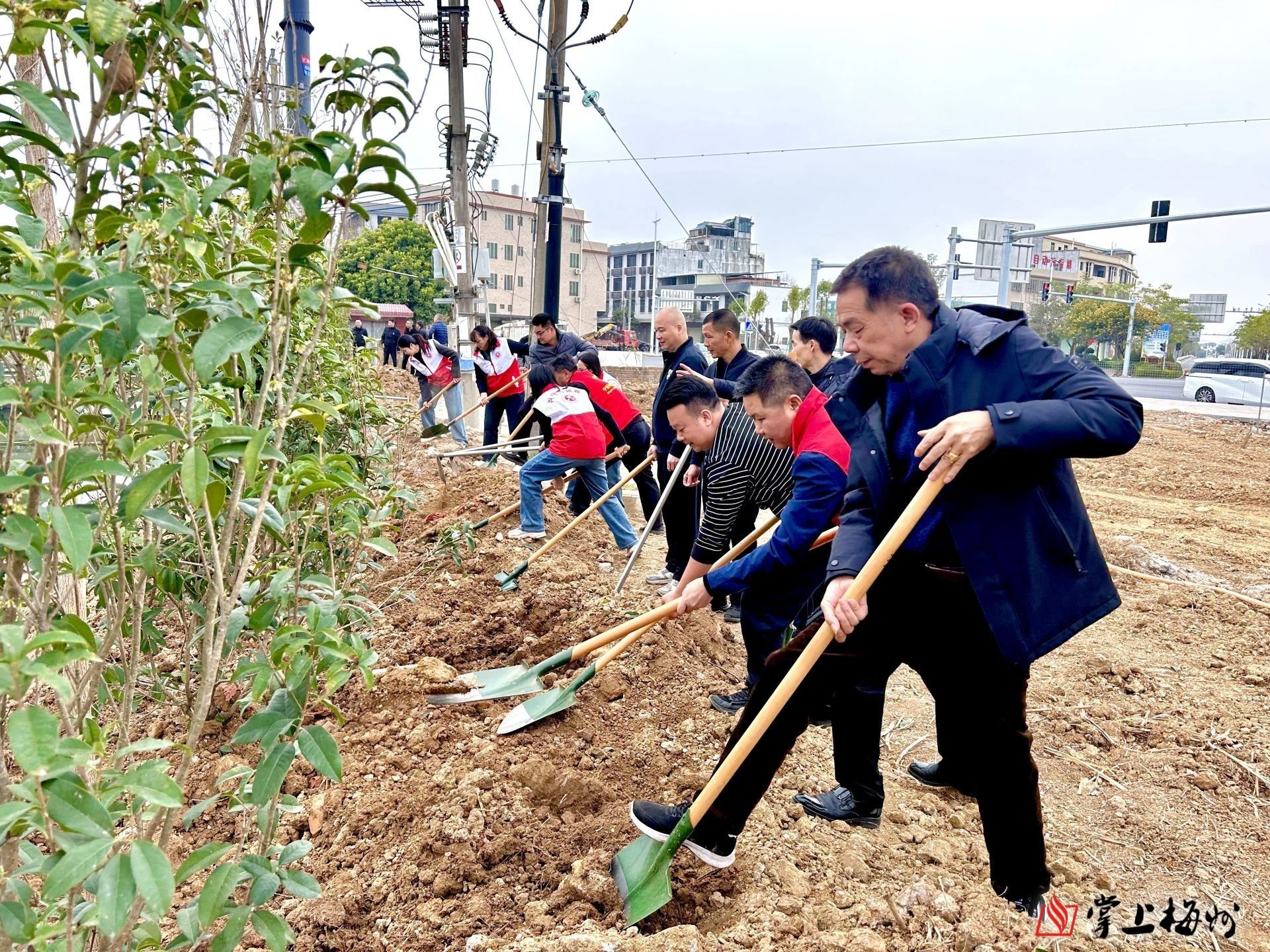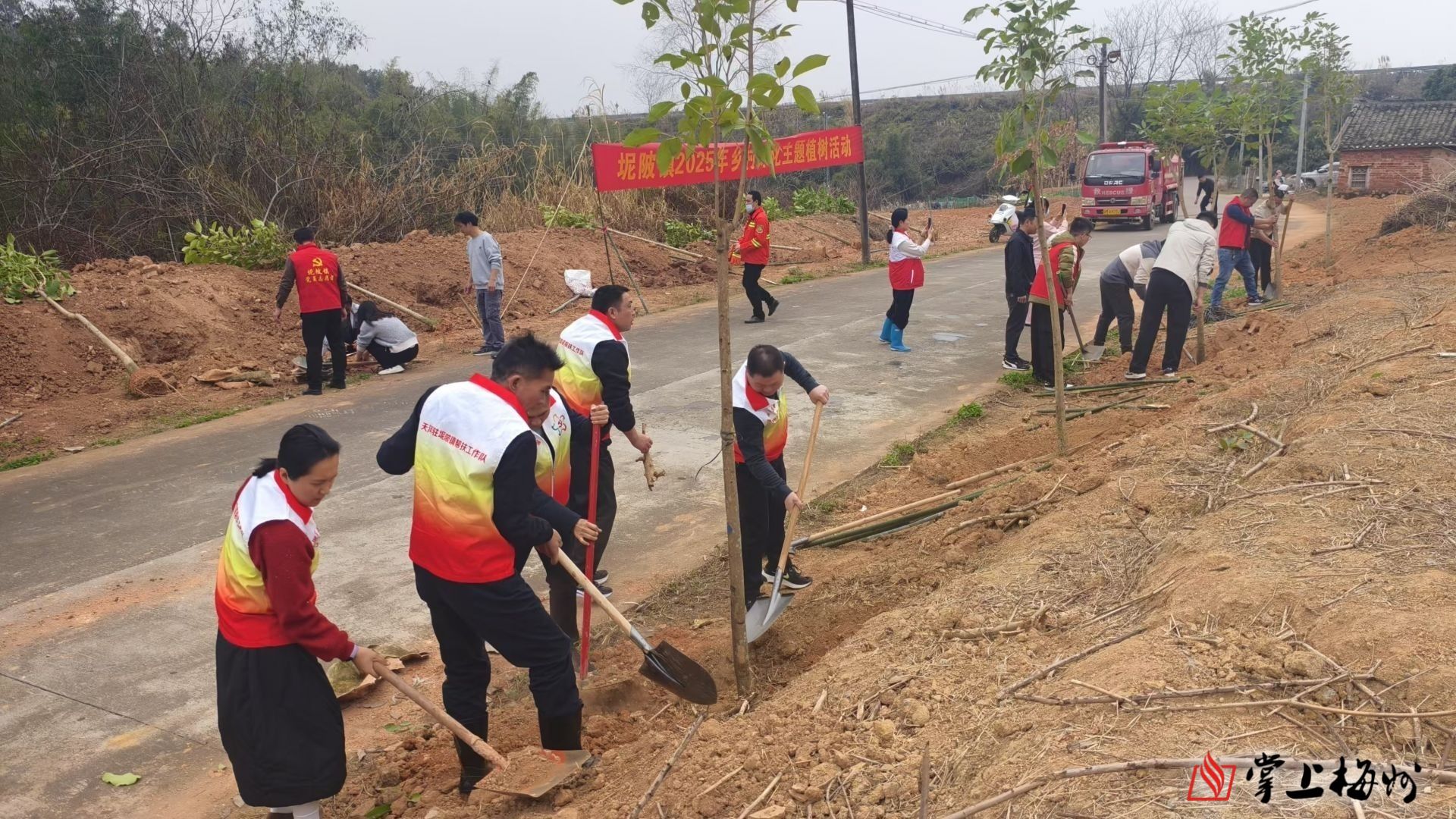 坭陂镇组织党员干部和群众开展义务植树活动。