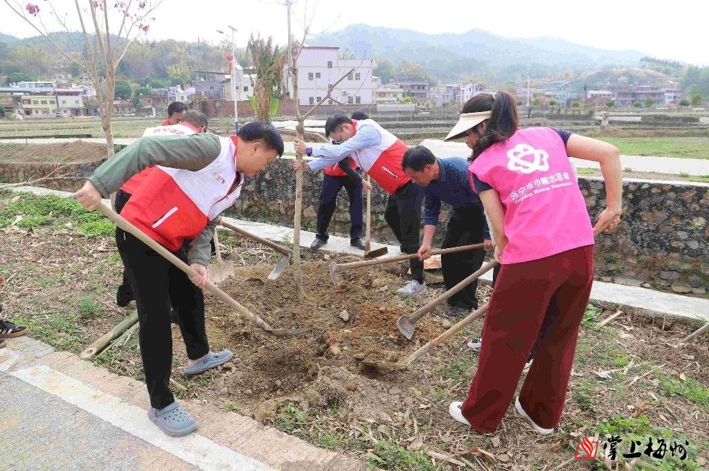日前,兴宁市罗岗镇党委组织镇领导班子成员、镇“百千万工程”指挥办、乡村绿化专班成员,在溪群村开展“爱绿、植绿、护绿”主题党日活动,在村道沿线新植树100多株,以实际行动践行绿色发展理念,为乡村生态振兴注入新活力。