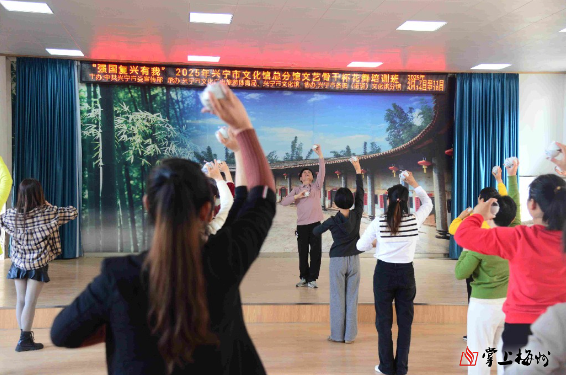 据介绍,通过培训班的举办,以“培训 +赛事”联动模式激发了兴宁全市基层文化活力,为兴宁市杯花舞传承与发展储备人才、夯实基础。也为兴宁文艺骨干提供了提升自我的平台,有力促进杯花舞这一优秀客家传统文化的传承与发展,助力乡村文化振兴迈向新台阶。