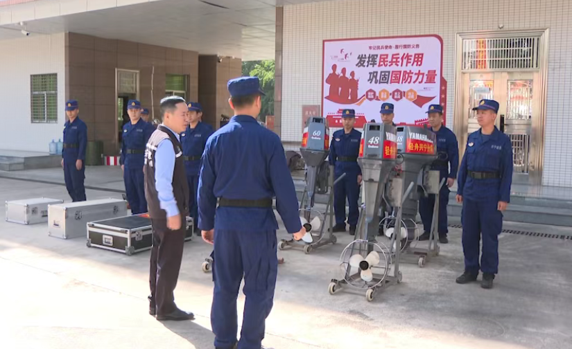 巡查组首站抵达兴宁市人民武装部,逐项核验救生衣、冲锋舟、艇尾机等物资储备,现场拆解检测抢险设备性能,防汛民兵同步开展冲锋舟编队航行的实操演练。随后,巡查组前往旺兴水闸及城乡排灌总站,重点检查防汛砂石、木桩和编织袋等物资储备情况。