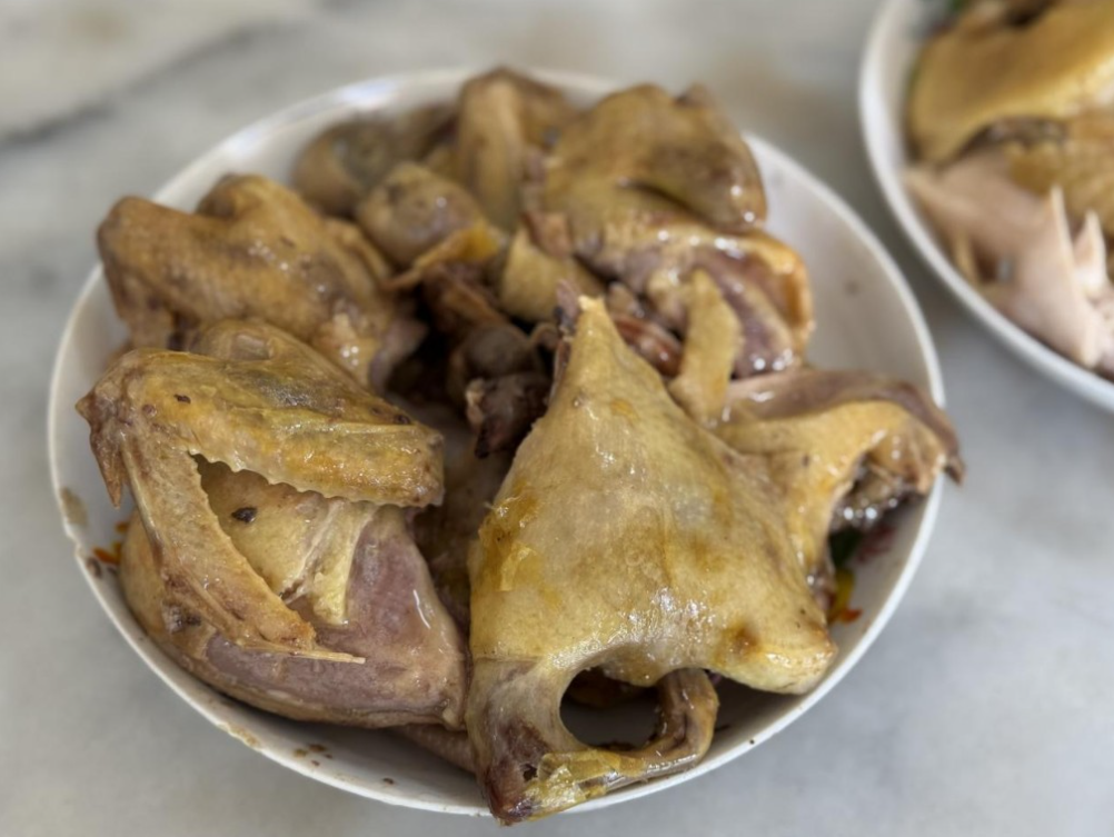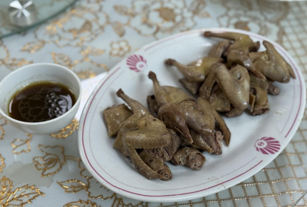 千里香饭店盐焗鸽:老灶粗盐古法,焗起高飞天空的兴宁鸽,皮脆肉嫩,撕开的瞬间咸香扑鼻,是山野宴席的“头牌”。选用农家放养的胡须鸡,重量在2斤左右且未曾产蛋的雌鸡。这种鸡肉质鲜嫩,特别适合制作盐焗鸡。出锅后,鸡肉表皮金黄,撕开砂纸,鸡肉的鲜香和盐香扑鼻而来,肉质滑嫩,回味无穷。