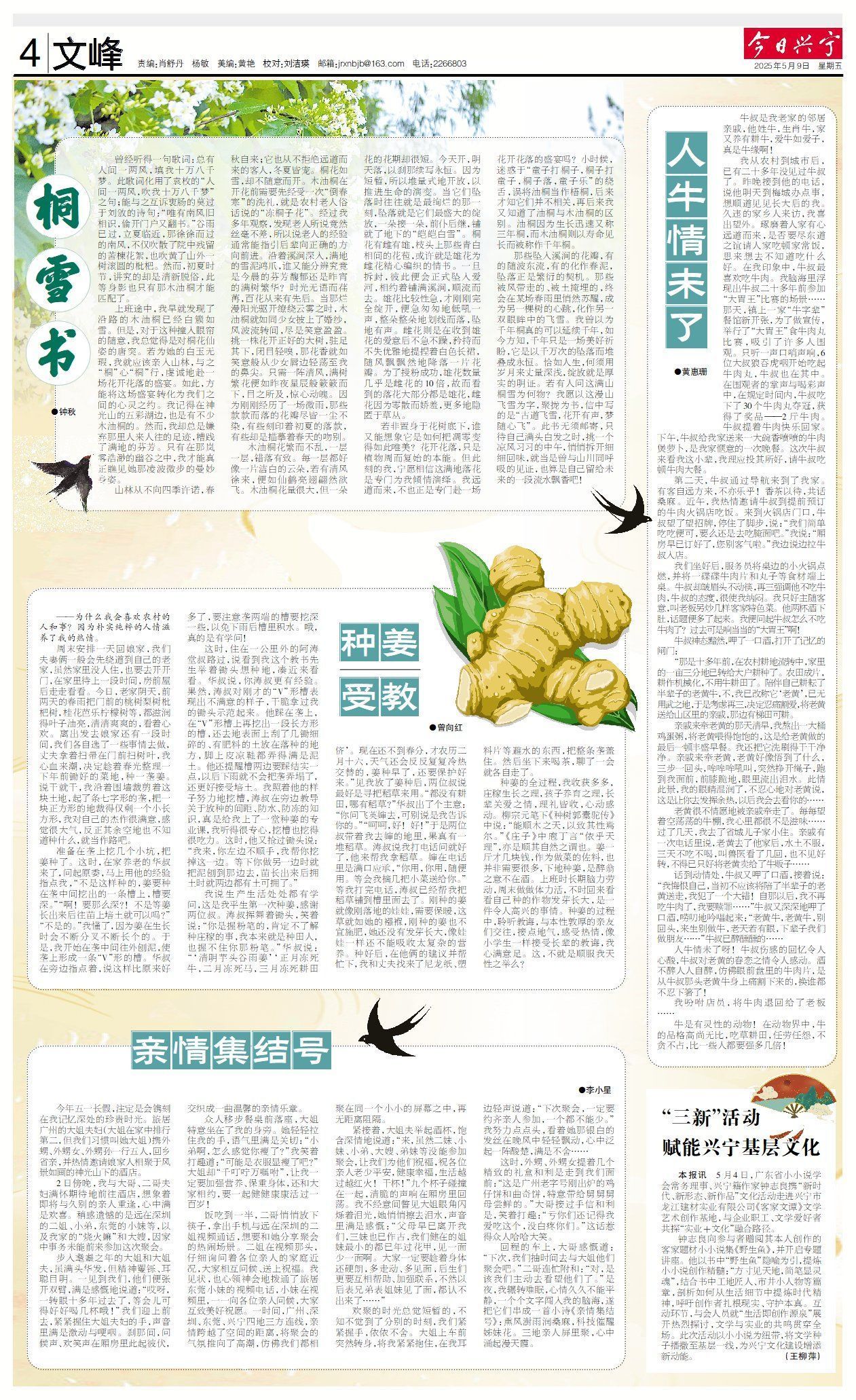 5月4日,广东省小小说学会常务理事、兴宁籍作家钟志良携“新时代、新形态、新作品”文化活动走进兴宁市龙江建材实业有限公司《客家文谭》文学艺术创作基地,与企业职工、文学爱好者共探“实业+文化”融合路径。
