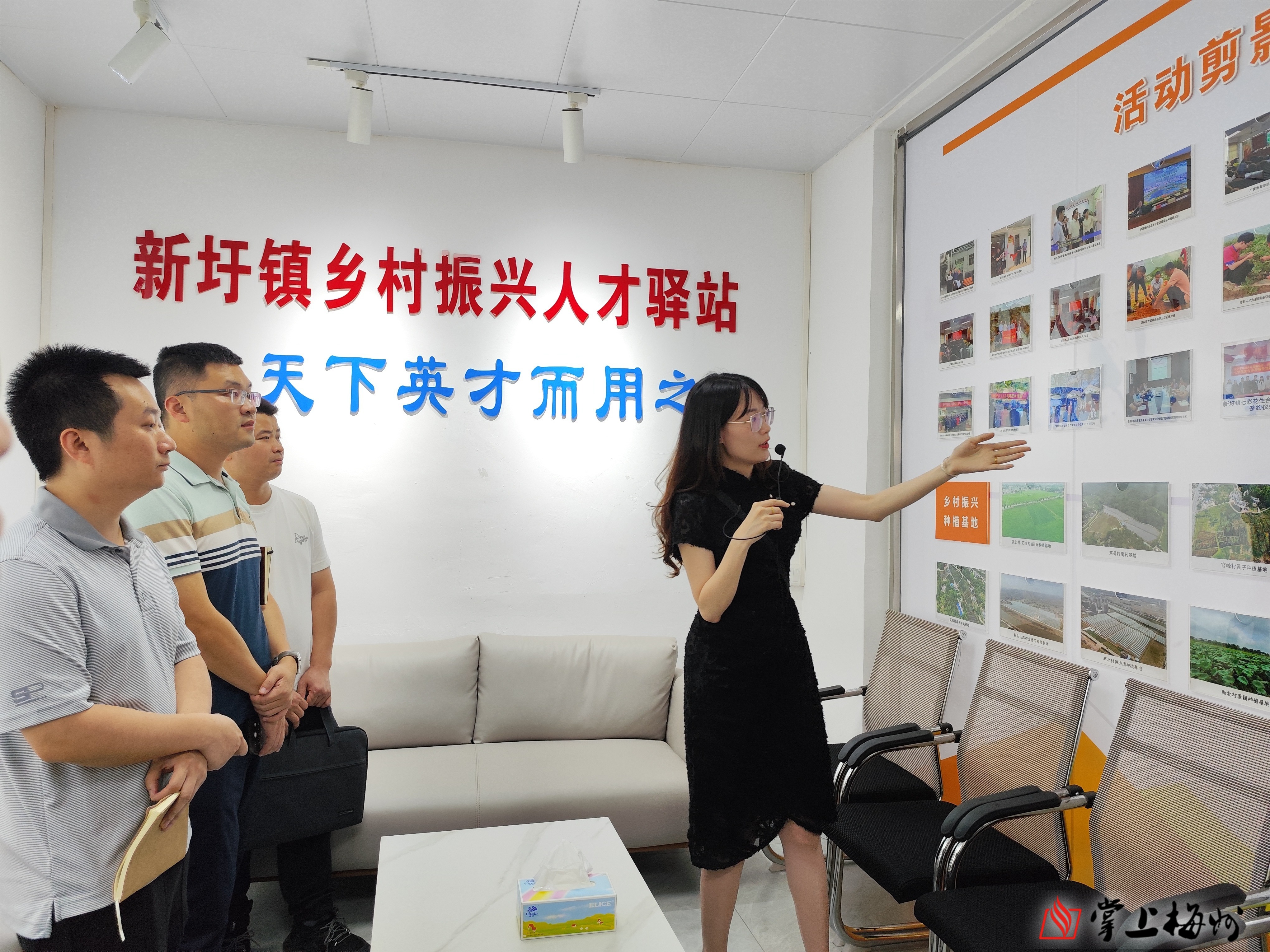 在新圩镇乡村振兴人才驿站参观现场,参会人员实地感受驿站“党建引领、产才融合”的建设成果。人才驿站于2022年投入30多万元建成,整合镇党群服务中心资源,打造集人才服务窗口、人才帮扶室、多功能培训室于一体的综合性平台。镇党委组建由党群副书记牵头的工作专班,联动驻镇帮扶工作队、党建、农业农村等部门常态化运作,并与嘉应学院林风眠美术学院、梅州市农林科学院签订长期合作协议,储备高校专家、科技特派员、乡土人才等33人,形成“高校智力+本土力量”的人才矩阵,为乡村振兴提供坚实支撑。