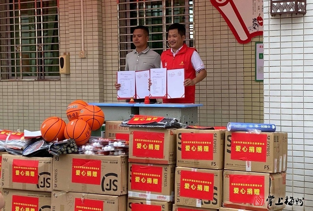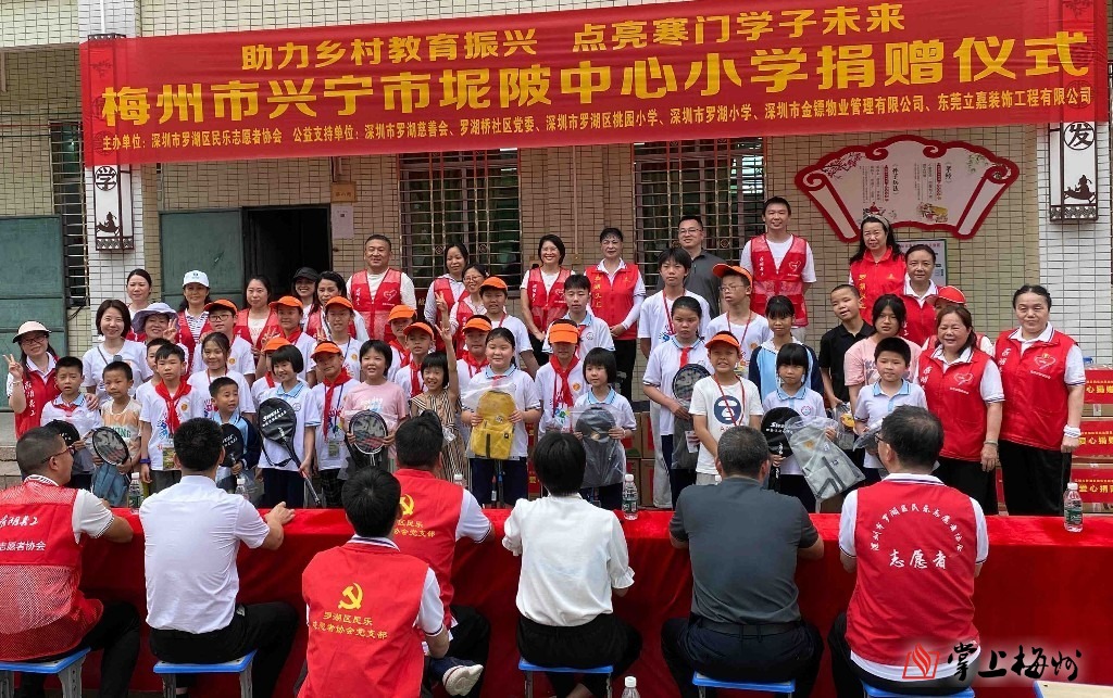 掌上梅州讯 日前,深圳市罗湖区民乐志愿者协会组织深港两地20组亲子家庭及众多志愿者,携手爱心企业与人士,走进兴宁市坭陂中心小学,开展以 “捐资助学,助力乡村教育” 为主题的活动,为 “手牵手 心连心·深港携手助学走访交流活动” 再添佳话,助力坭陂中心小学改善办学条件。