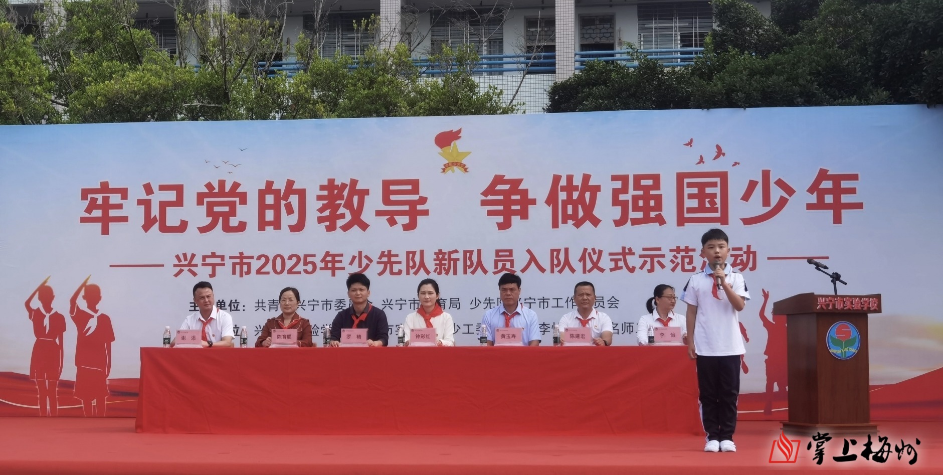 掌上梅州讯 5月27日上午,兴宁市2025年少先队新队员入队仪式示范活动在兴宁市实验学校举行。团兴宁市委、兴宁市教育局、少工委、实验学校相关负责同志,以及来自市各学校的大队辅导员、市实验学校少先队员代表共计300余人参加了活动。