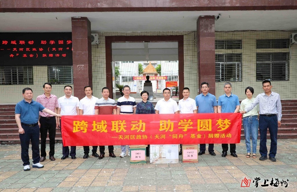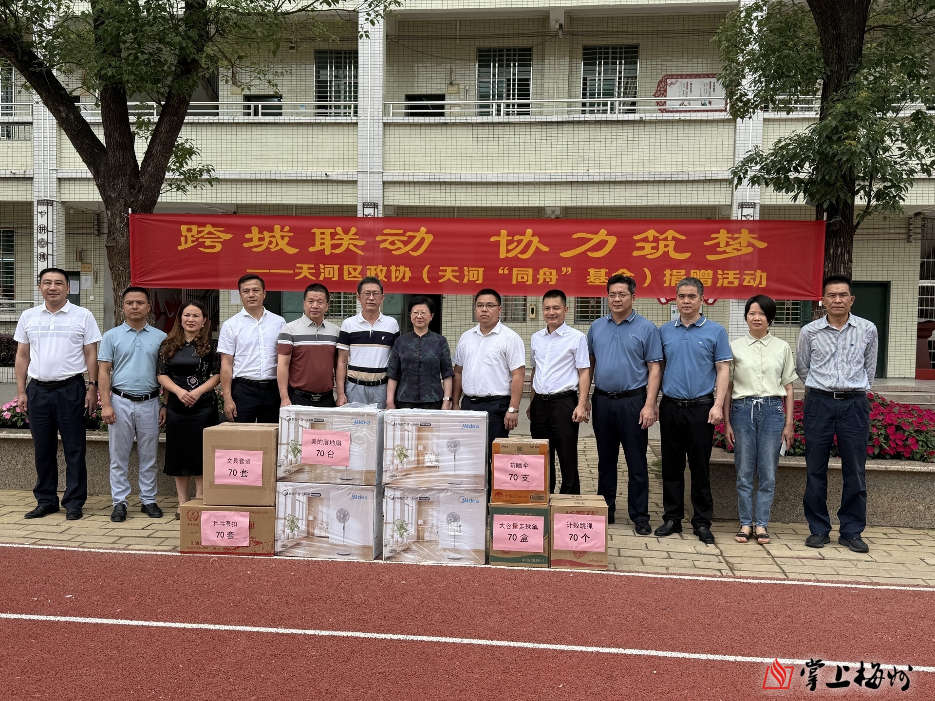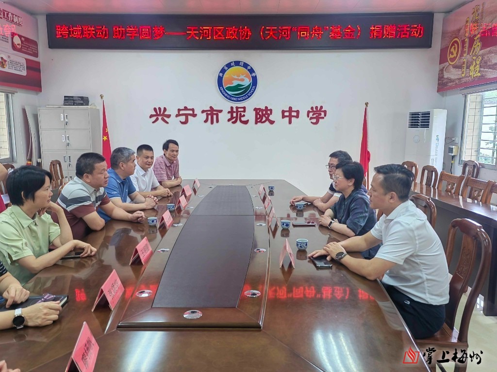 掌上梅州讯 日前,广州市天河区政协副主席曹利元带领部分政协委员前往兴宁市坭陂镇,开展天河同舟基金“跨域联动·助学圆梦”捐赠活动。旨在深入推进“百千万工程”乡村教育帮扶工作,切实发挥政协组织资源整合优势,提高对口帮扶工作实效,助力教育公平,促进区域协调发展。兴宁市政府副市长谢明扬、兴宁市教育局局长郭远林、坭陂镇党委书记何永添、驻坭陂镇帮镇扶村工作队(以下简称工作队)成员、坭陂中学、坭陂中心小学等相关部门负责人参与活动。