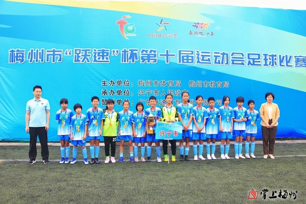 5月28日,为期6天的梅州市第十届运动会首个竞体项目——男女足球E组比赛,在兴宁市香港赛马会足球场圆满落幕。男女足球E组兴宁代表队分别获得比赛冠军,其中女足E组兴宁队获得本届市运会首枚金牌。