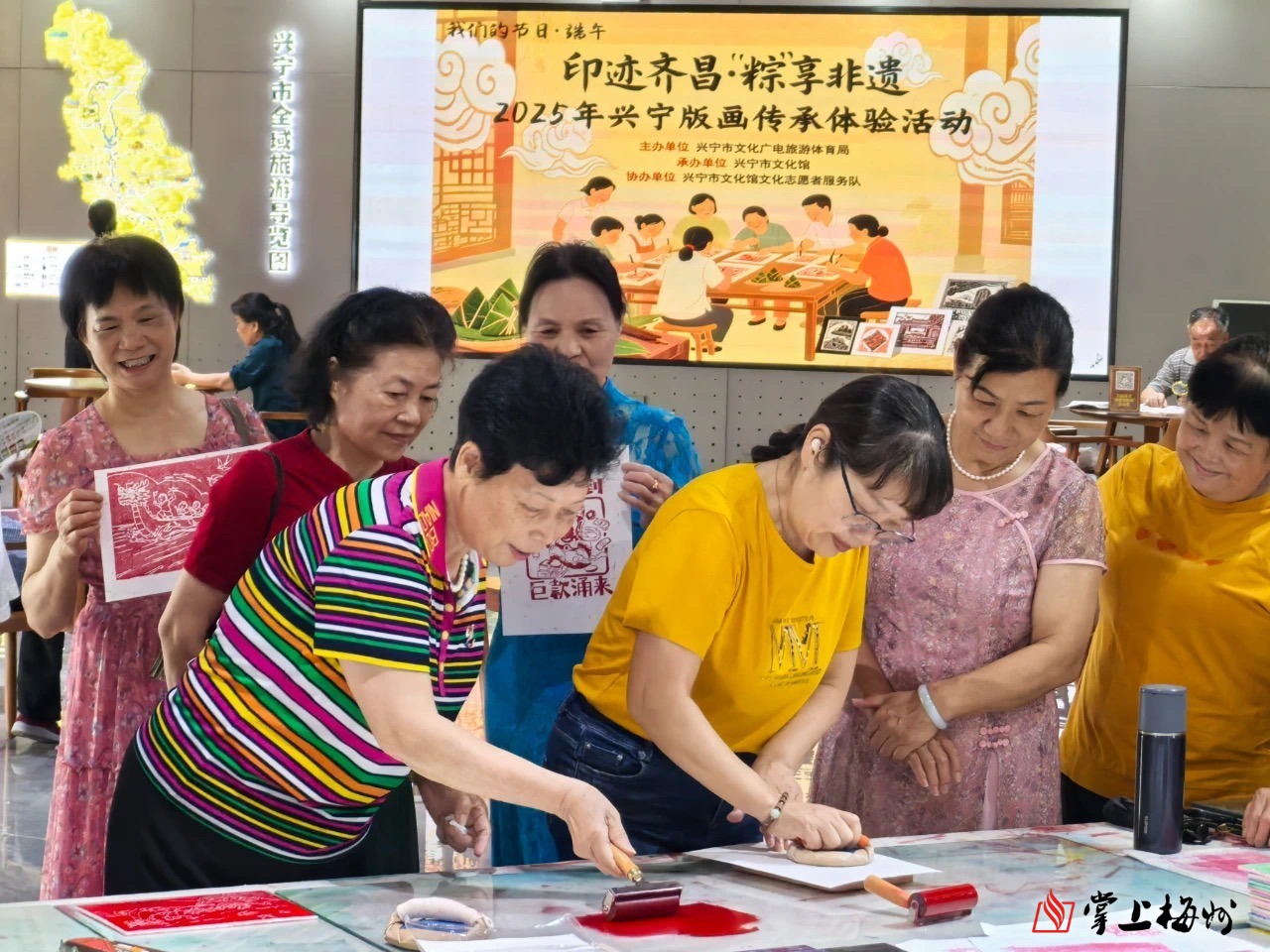 5月23日,兴宁市旅游集散中心分外热闹,由兴宁市文化广电旅游体育局主办、兴宁市文化馆承办的我们的节日·端午——“印迹齐昌·‘粽’享非遗”2025年兴宁版画传承体验活动开启。