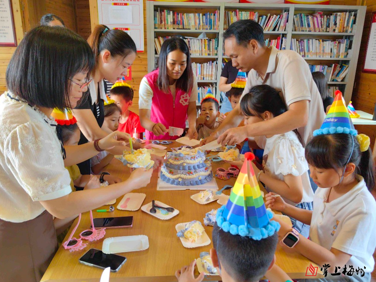 兴宁市合水镇富和村围屋时光小院·爱心妈妈驿站举行集体生日会,围屋妈妈和孩子们一起分蛋糕。