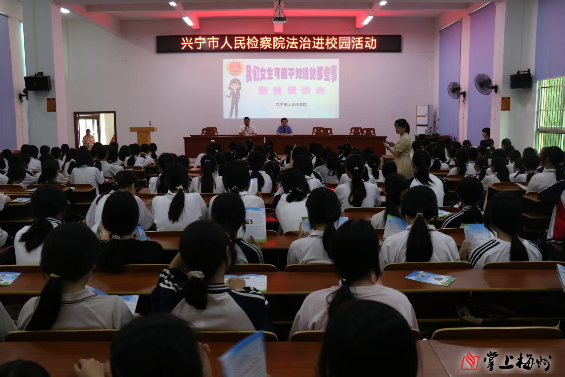 兴宁市检察院接连开展法治巡讲、检察开放日活动,为孩子们解法忧、播法种,送上特别的“节日礼物”。兴宁市检察院干警分别走进黄陂镇、罗岗镇中小学,以“大讲堂+小课堂”模式,为家长、学生开展家庭教育指导与女生自护教育。
