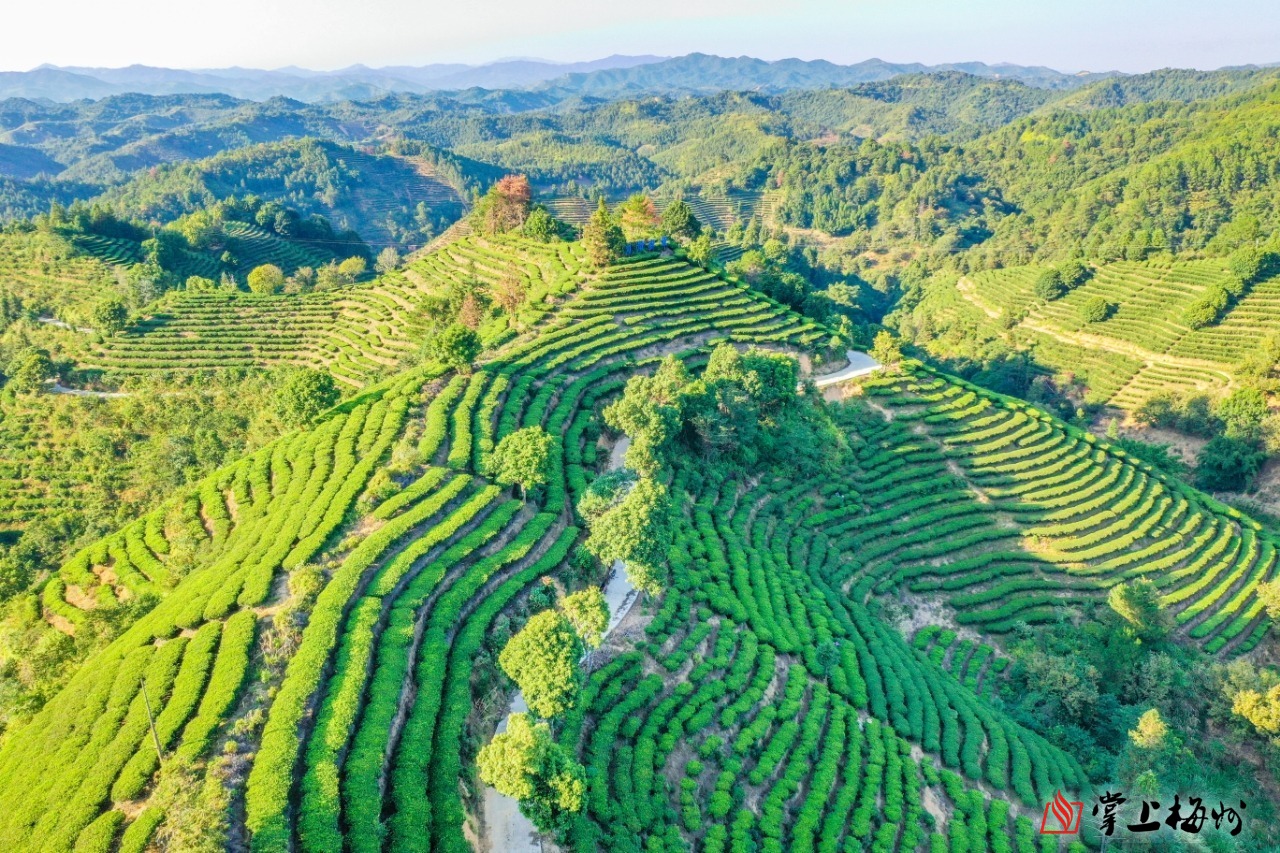 铁山茶场上绿意葱茏,茶园梯田层层叠叠。