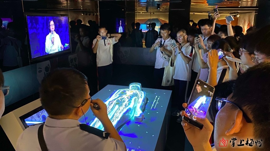 6月20日下午,兴宁市50名师生走进广东省禁毒科普馆,开启沉浸式禁毒教育之旅。这座融合科技感与教育性的展馆以序厅、禁毒史话、毒情形势等10大主题展厅为载体,通过多媒体演示、实物陈列、VR毒驾模拟等互动手段,立体呈现毒品危害与禁毒成果。