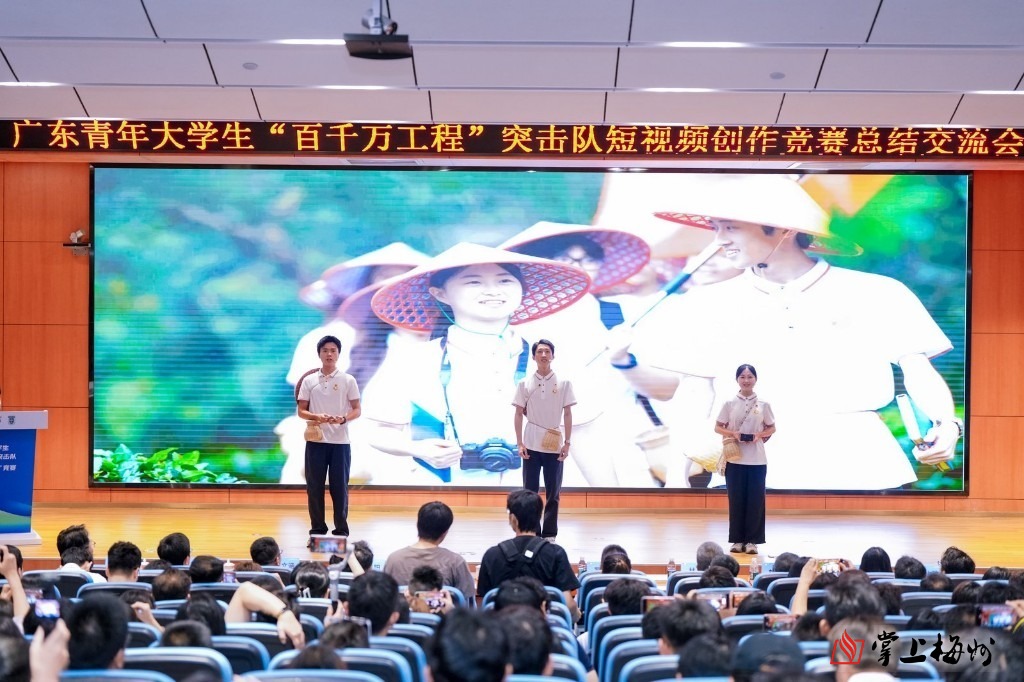 总结交流会上,广东财经大学“留”影南粤实践团、华南农业大学珠江学院“行者突击队”、华南师范大学“青烨忻语实践团”、广东科贸职业学院“青锋茶行·百万助农”突击队等优秀项目代表分享了创作经验。他们从选题策划、实地调研到影像表达的全程复盘,为现场观众提供了可借鉴的实践范本。活动现场正式揭晓了本次短视频创作竞赛的获奖名单,并举行了颁奖仪式。