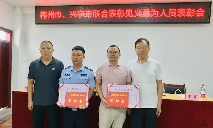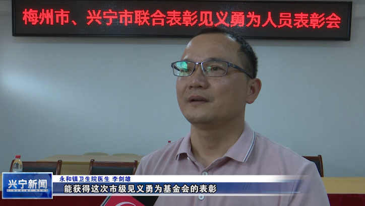 日前,梅州市见义勇为基金会理事长刘俊岳一行专程来到兴宁市永和镇卫生院,向在危急时刻挺身而出的医生李剑雄、辅警钟超颁发“见义勇为”慰问奖励证书和奖励金,表彰他们的英勇行为,传递社会正能量。