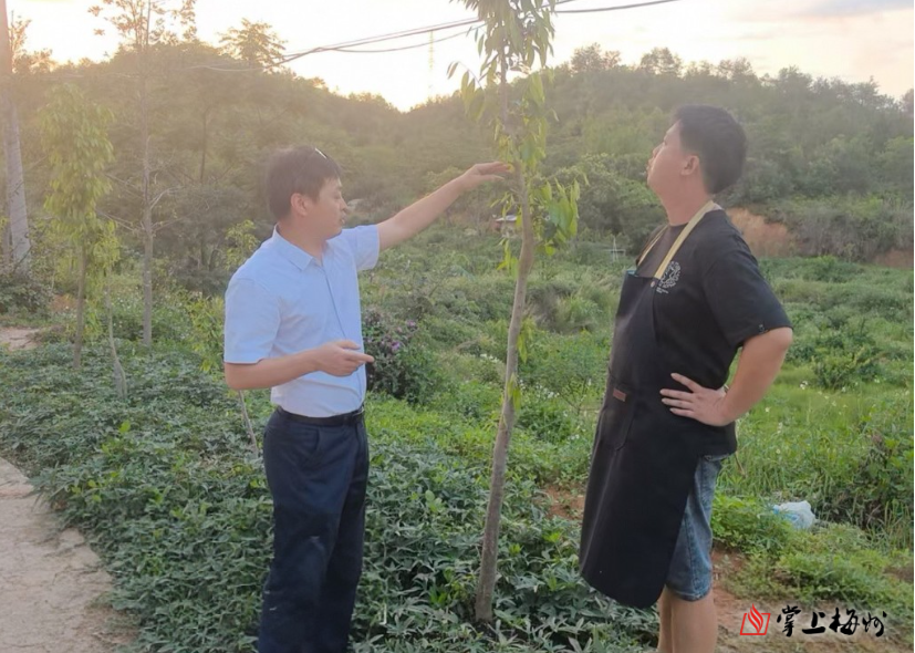 在先声村森益农业有限公司的油茶林,马华明俯身察看油茶长势后,向企业负责人提出追施肥料促进果实成长、修筑蓄水池保障灌溉用水、修剪枝叶改善通风透光条件、加强炭疽等病虫害监测和防治、清除油茶林中的杂草、及时疏果等技术指导意见,为该企业的油茶产业发展精准“把脉开方”。