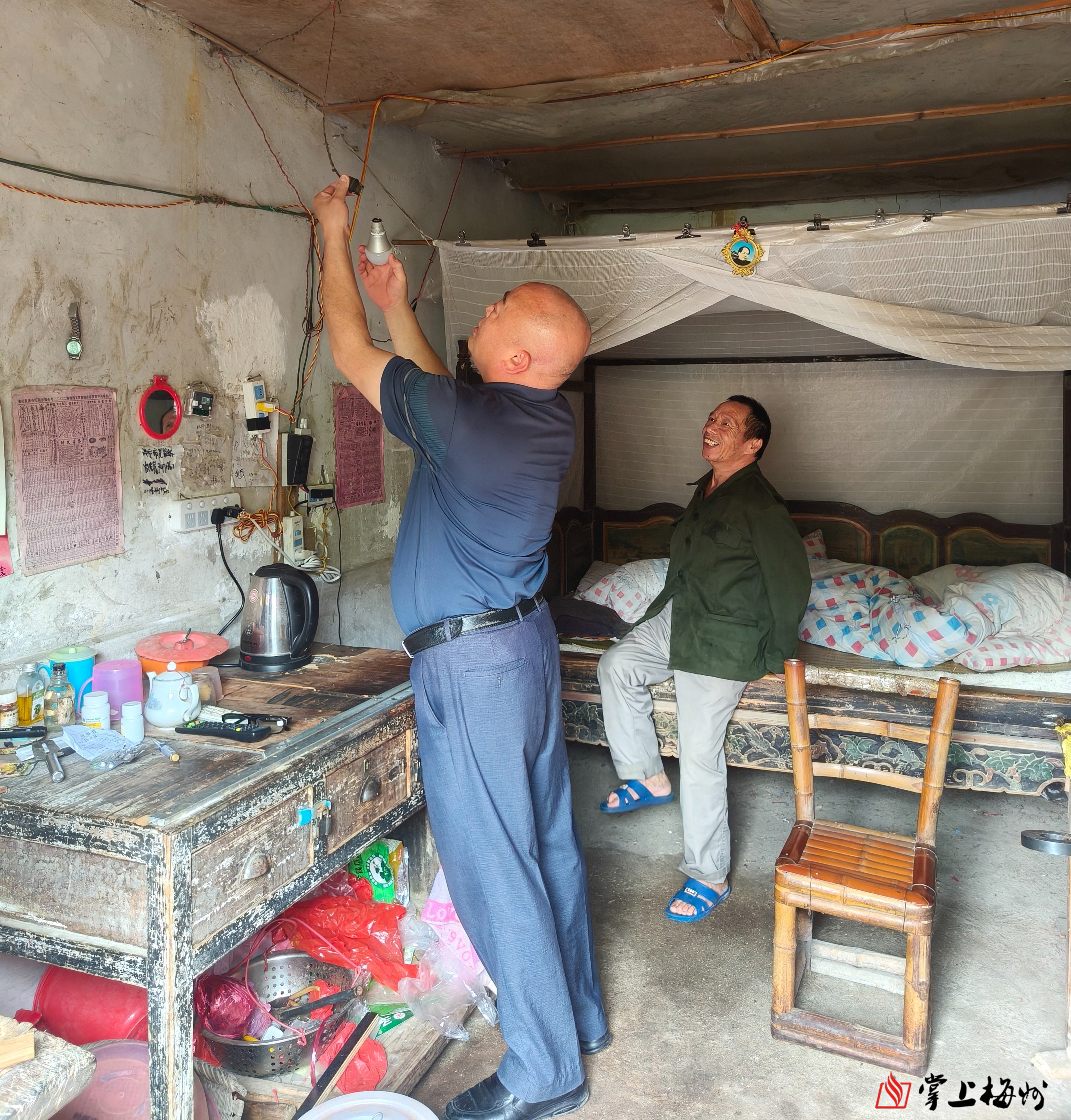党员干部在开展“周二上门去”行动期间,帮助群众更换电灯泡。(罗岗镇政府供图)