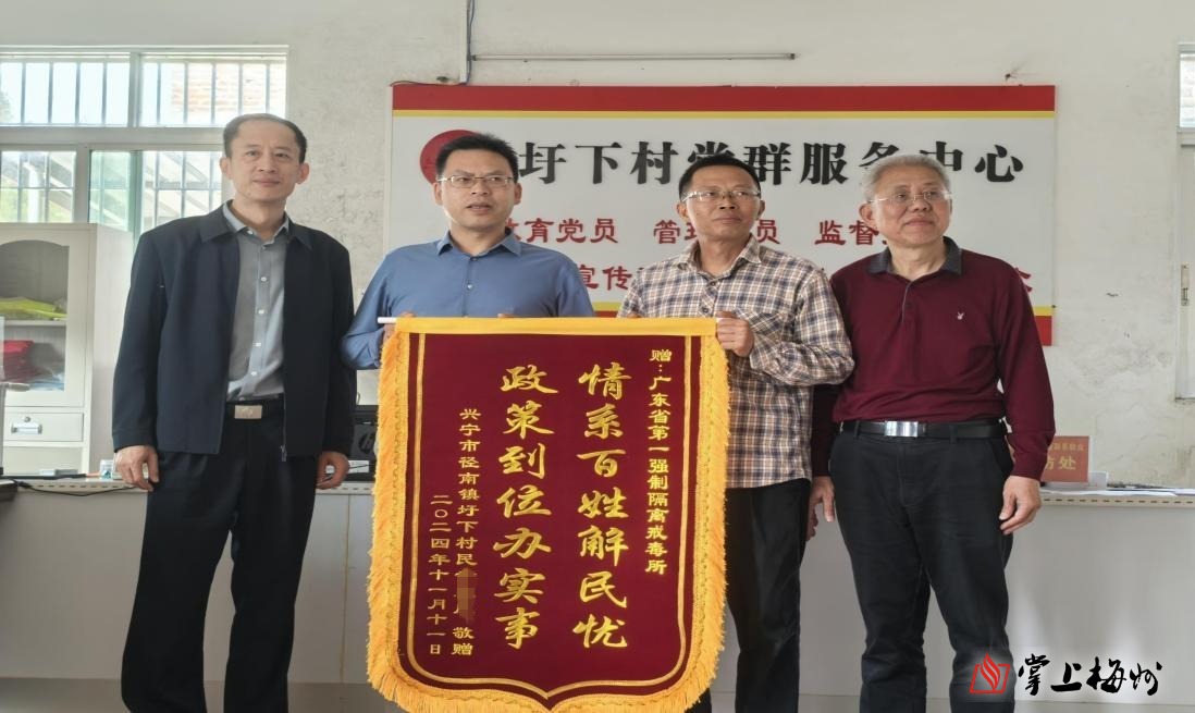 “多亏了驻镇帮扶工作队和省第一强制隔离戒毒所的鼎力相助,让我们家绝处逢生!”近日,兴宁市径南镇圩下村村民幸某把一面绣着“情系百姓解民忧 政策到位办实事”的锦旗,郑重地交到前来开展帮扶的省一戒所干警和工作队手中。这面锦旗和纷至沓来的感谢信,宛如点点星光,映照着径南镇驻镇帮扶工作队(以下简称“工作队”)用真情与实干在乡村沃土上绘就的温暖图景。