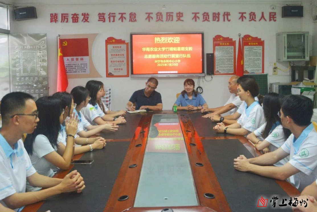 支教期间,华南农业大学党委副书记丁红星、陈磊一行前往永和中心小学,关切询问大家的适应情况,细致了解各个队员的年级与专业构成,并对大家投身支教事业的热情与担当给予肯定,鼓励大家珍惜实践机会,在实践中收获成长。永和中心小学校长吴秋程详细介绍了永和中心小学的基本情况,为两校进一步深化合作、推动支教工作落地提供了具体参考。