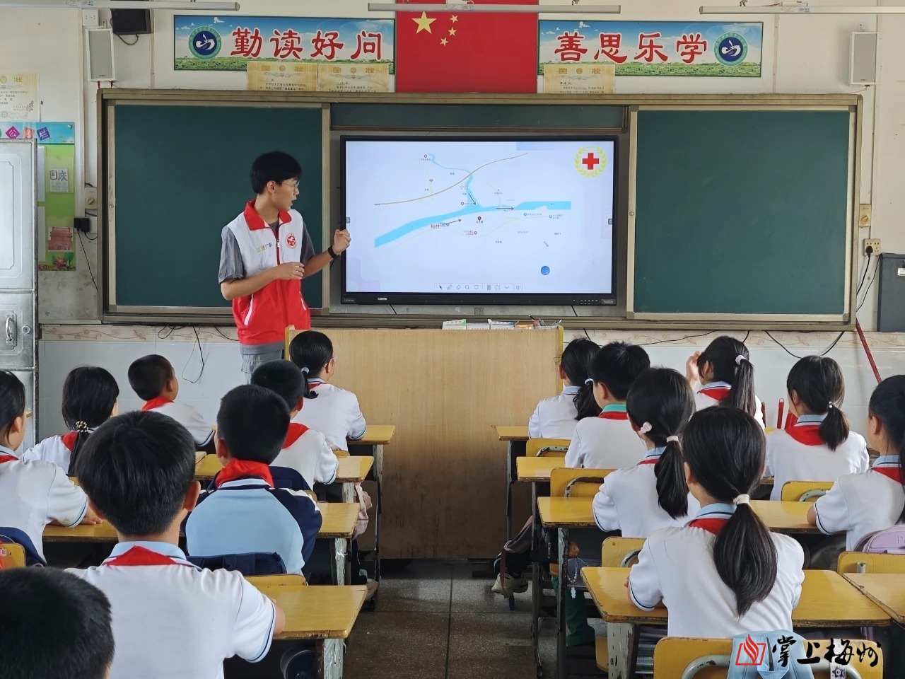 为了让学生充分认识溺水的危险性,切实提升防溺水认识,增强自我保护意识,提高突发情况的应对能力。活动期间,先锋队与水口镇团委一同走入水口中心小学,给学生们带来一堂“12355”青春自护——预防溺水宣传课。课程内容丰富、实用,向学生们细致分析了周边水域中可能存在的危险,重点向学生们强调防溺水“六不准”内容,要求做到“溺水警钟时常鸣,安全时刻记心中”。先锋队成员们全情投入,学生们热情高涨,互动取得良好成效。